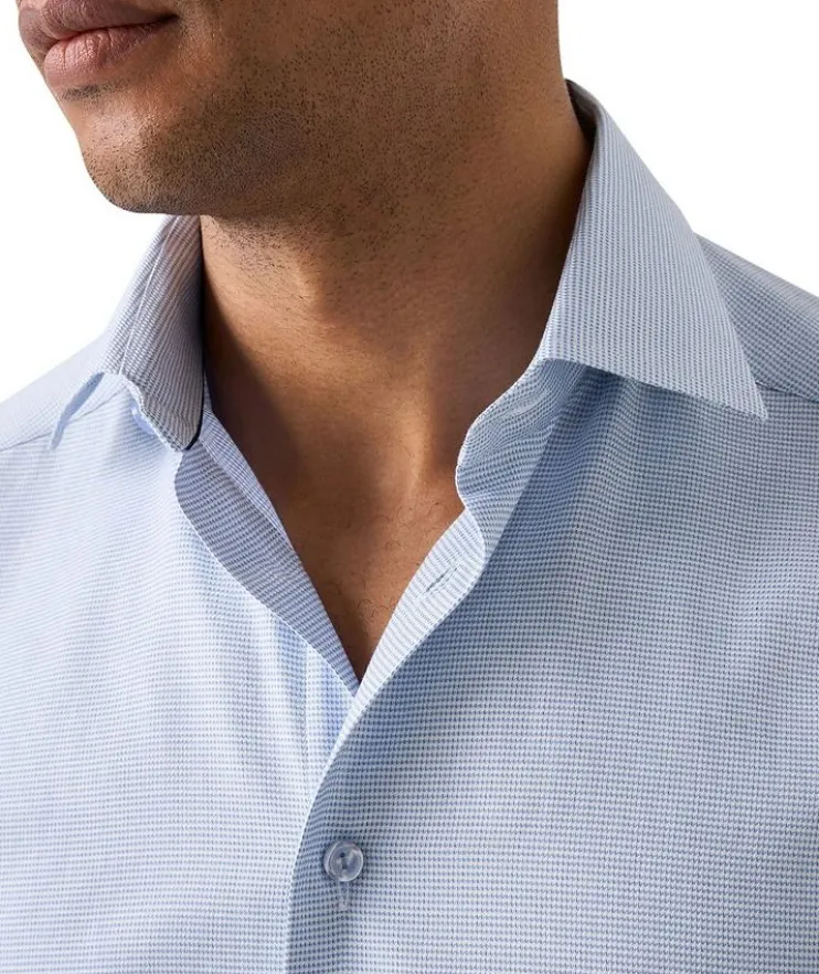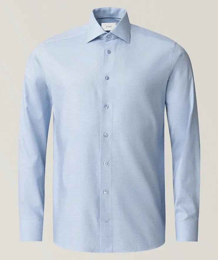 - A classic shirt woven from 100% organic cotton with the elegant texture and luster of the dobby weave. Made from Eton’s Signature Dobby with a crease-resistant finish, the dobby is woven with a white base yarn together with two subtle shades of coloured yarn to create an elegant three-dimensional texture.