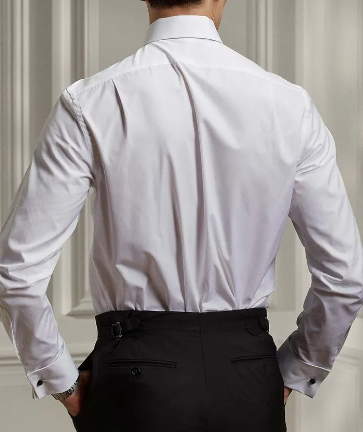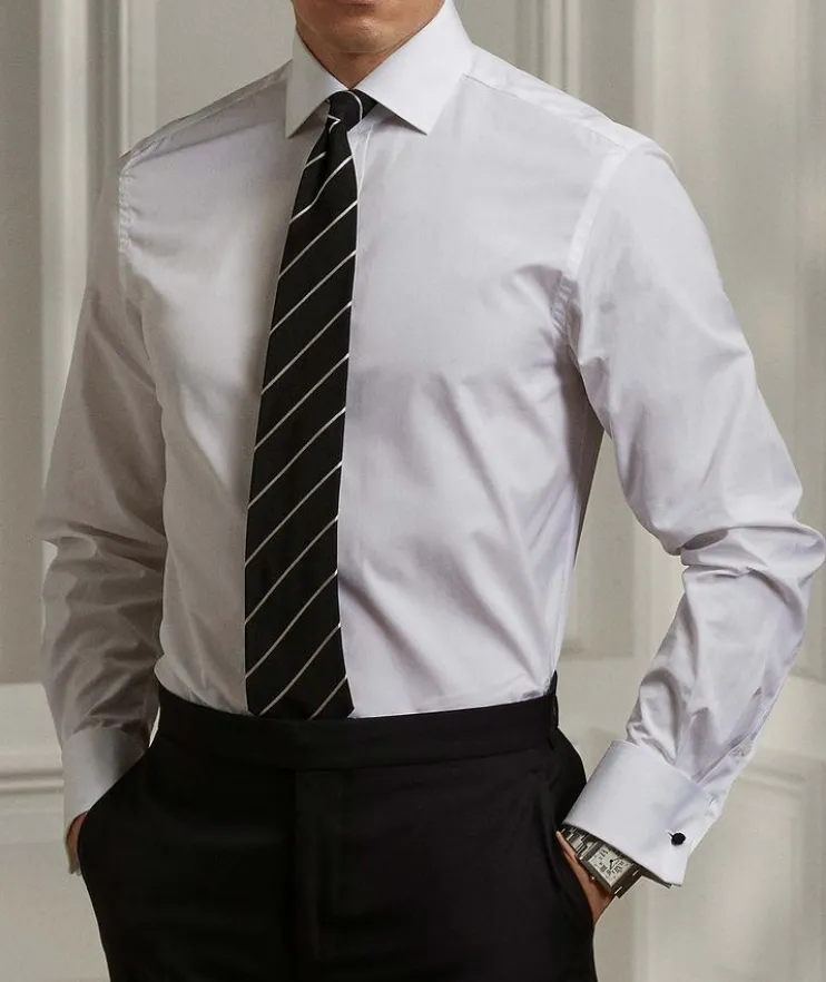 - Renowned for their commitment to style and excellence, Ralph Lauren’s Purple Label uses the best materials combined with meticulous construction to create their elevated classics. Expertly crafted in Italy, this sophisticated dress shirt is made from a fine cotton and features a spread collar, genuine mother of pearl button placket, French button cuffs and crisp white finish completing the luxurious style.