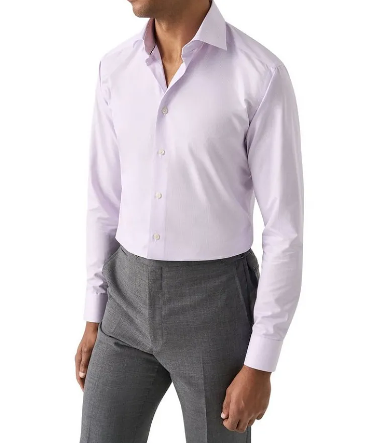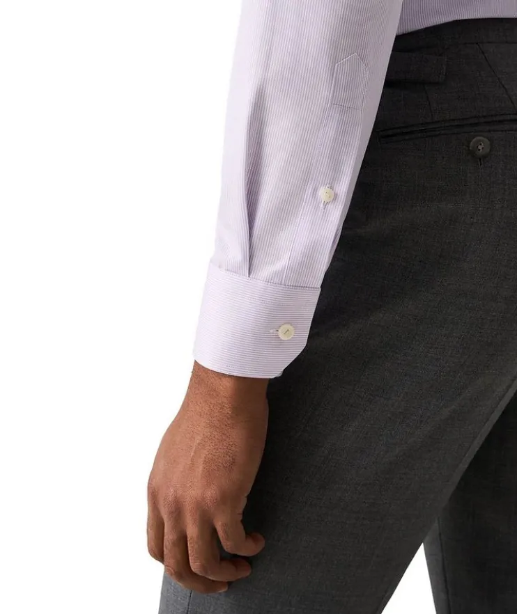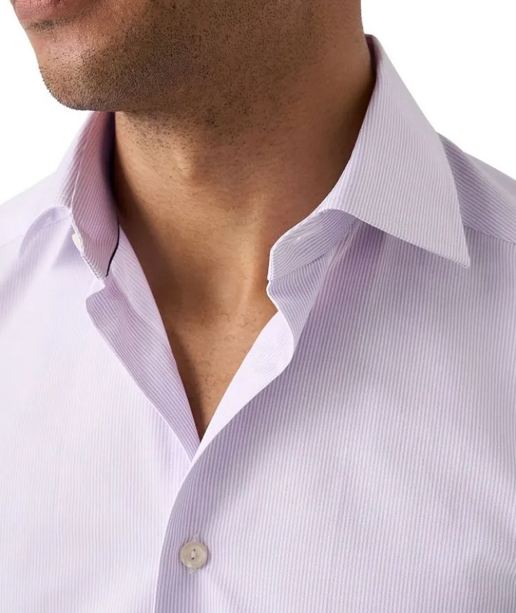 - A timeless dress shirt with fine stripes made from lustrous 100% cotton Signature Twill weave with subtle texture. This versatile and highly comfortable business classic is presented with white buttons and crease-resistant performance.