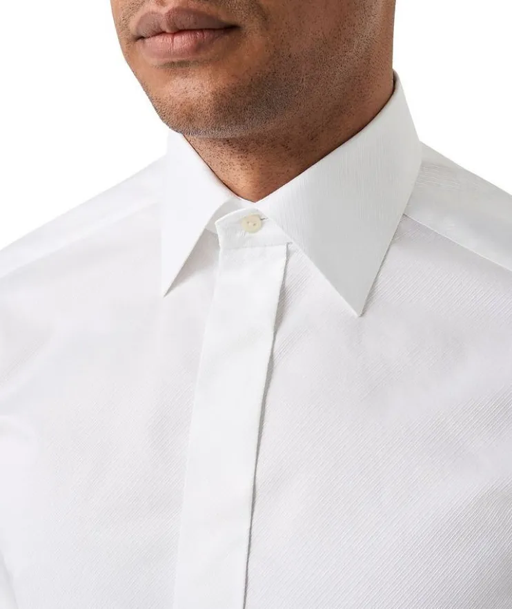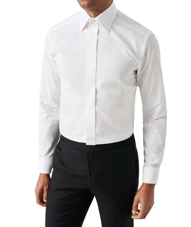 - A timeless evening shirt with the added texture of an elegant jacquard weave. The fabric is printed with a rich check pattern and the 100% cotton yarn offers a beautiful luster. Complete with a fly front to hide the buttons for a clean and classic look.