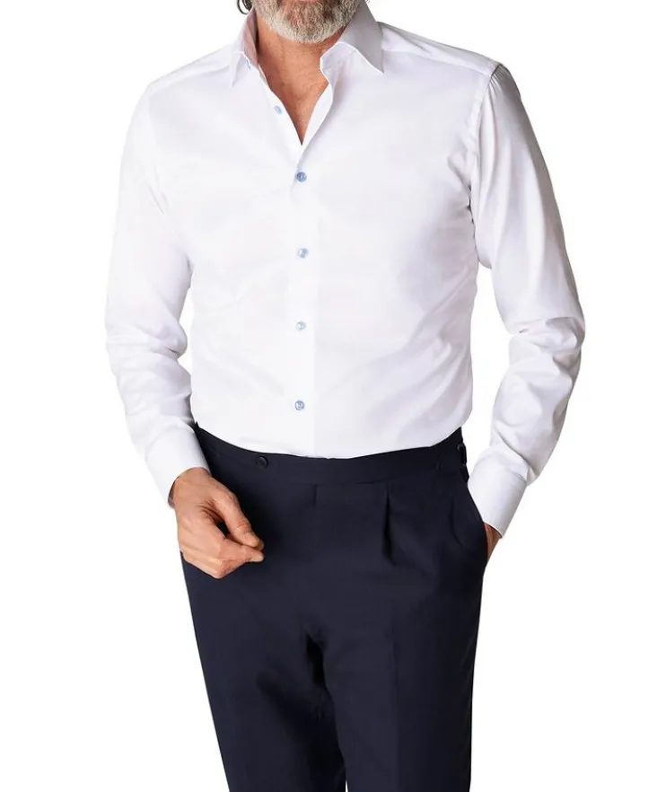 - When you’re opting for a sans-tie look, this dress shirt from Eton is the perfect option. Whether it’s being worn at the office or out for dinner with friends, you’ll look impeccable and effortlessly stylish. The eye-catching button-down has been crafted with longevity and uncompromising quality in mind. Woven with a subtle geometric pattern and texture, it is completed with the brand’s signature crease-resistant finish for a sharp morning-to-night appearance.