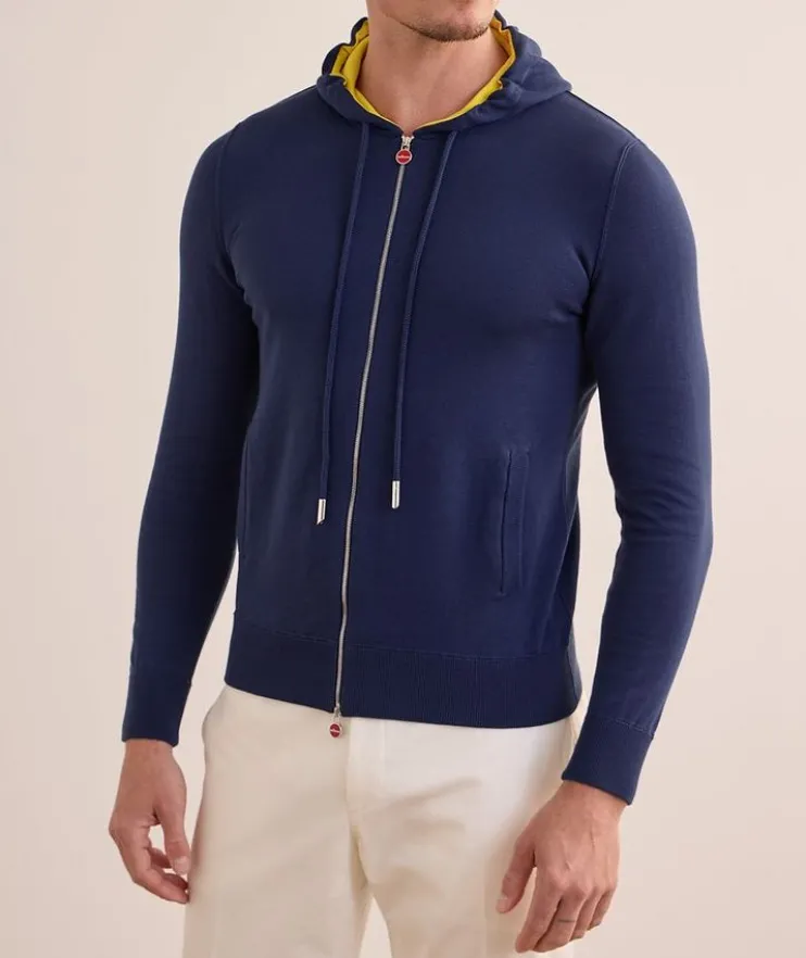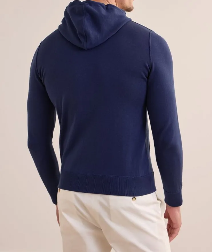 - Crafted in Italy from a soft cotton knit, this hooded sweater features a contrast lining in the hood for a playful pop of colour.