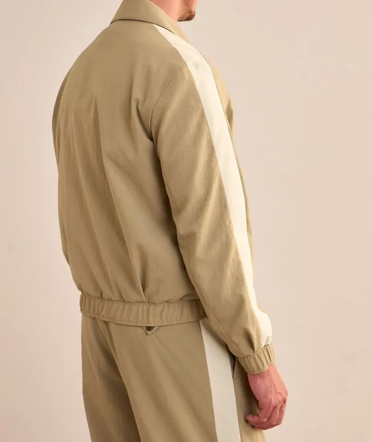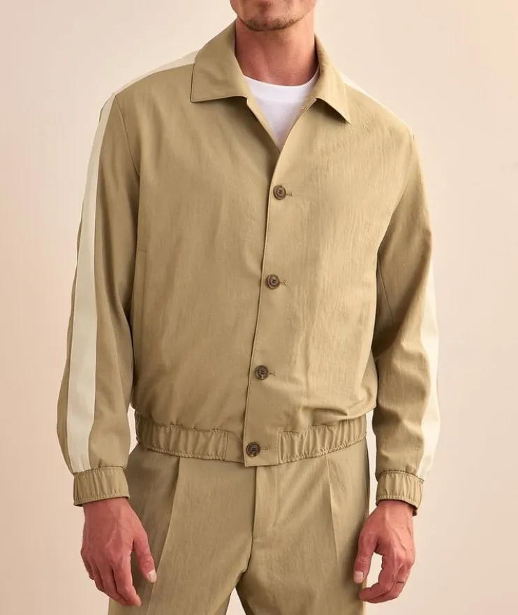 - Elevate your everyday wardrobe with this versatile bomber jacket. The relaxed fit drapes effortlessly on the body, while the distinctive side stripe panel creates a striking visual statement. Finished with button and pocket details, this jacket seamlessly transitions from day to evening.