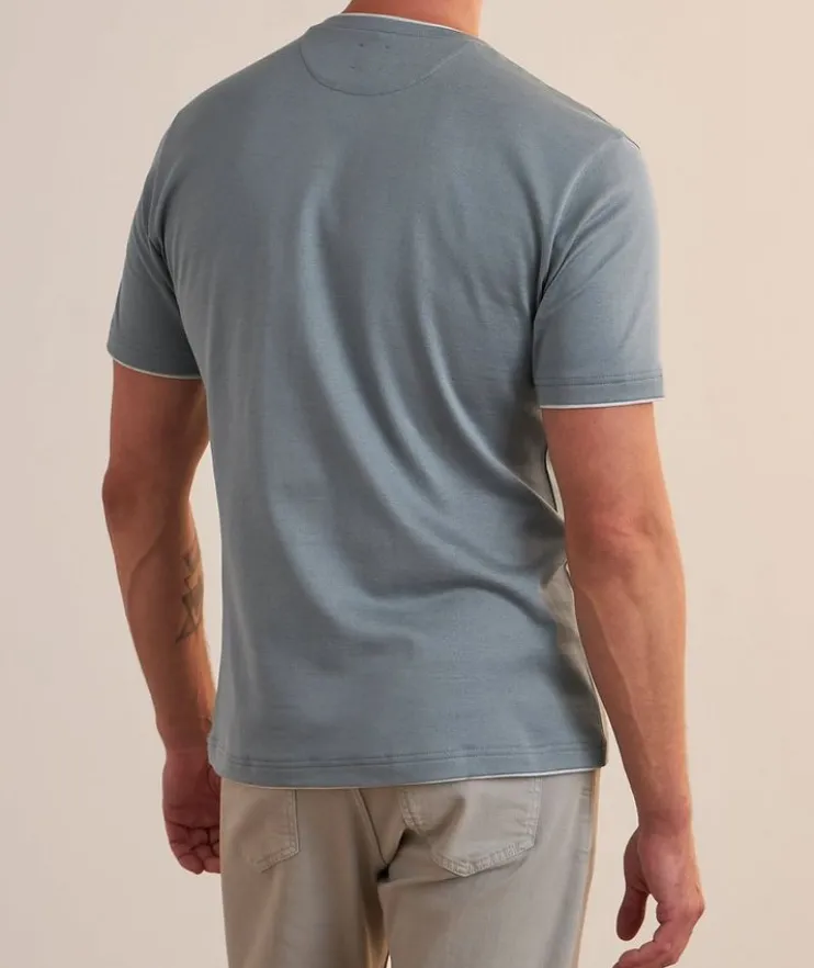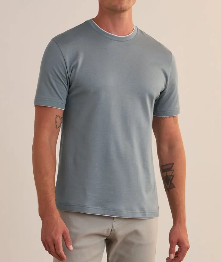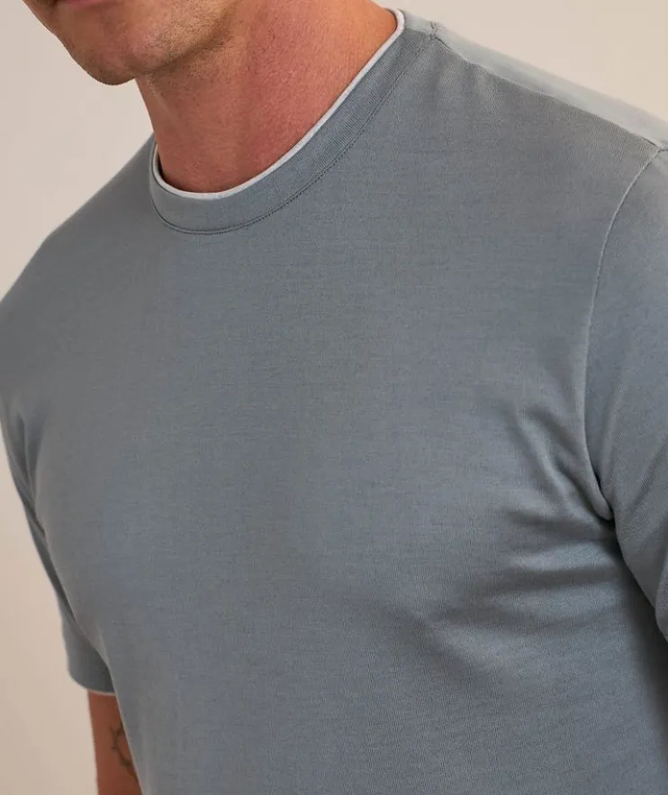 - Italian crafted from soft cotton jersey, this classic crewneck T-shirt is enriched with contrast tipping details at the collar, sleeve cuffs and hem for a layered look without the bulk.