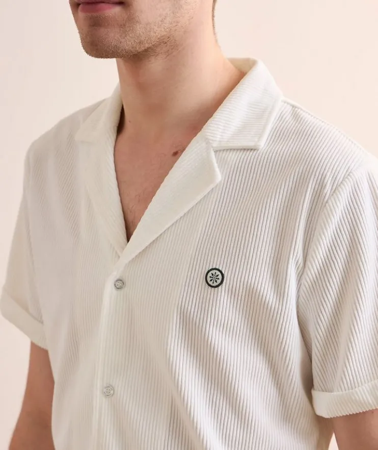 - Perfect for work, leisure and social events, this elevated camp shirt features a button front closure, cuffed sleeves and a corduroy finish blending a touch of nostalgia with contemporary style.