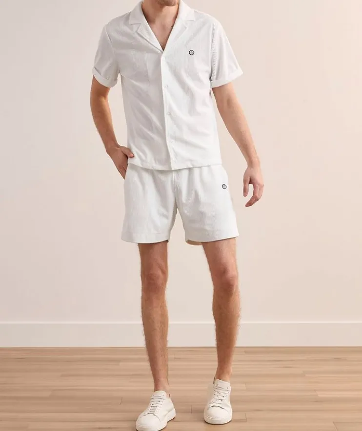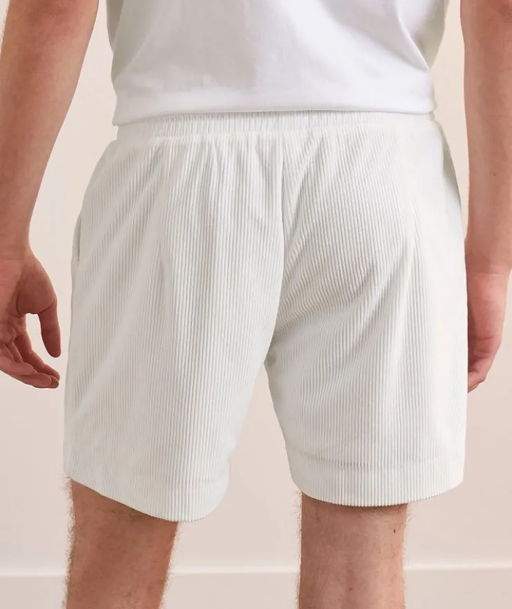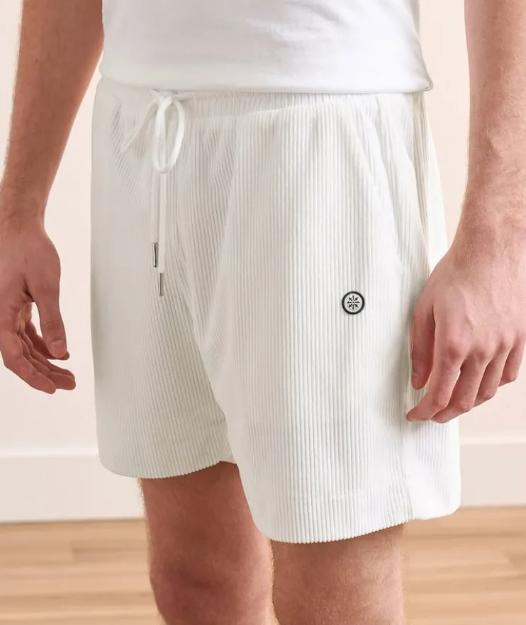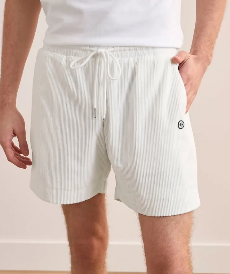 - Blending a touch of nostalgia with contemporary style, these lined corduroy shorts feature an elasticized waist, side pockets and a signature logo patch for quiet luxury and sophisticated brand appeal.