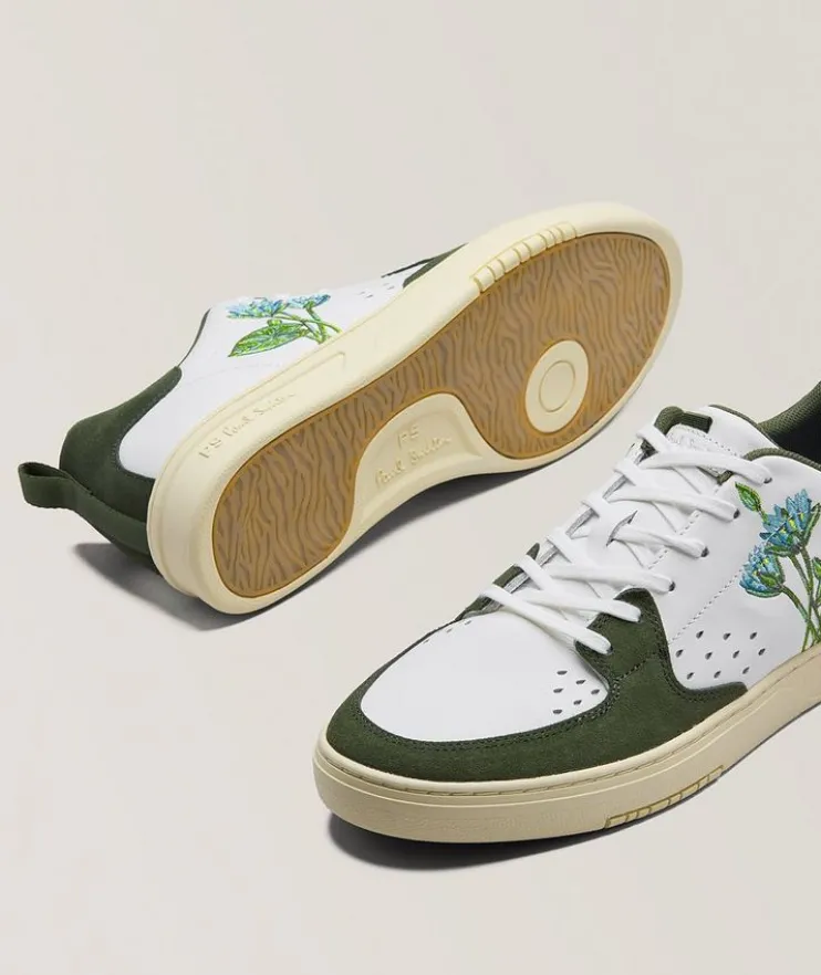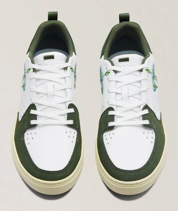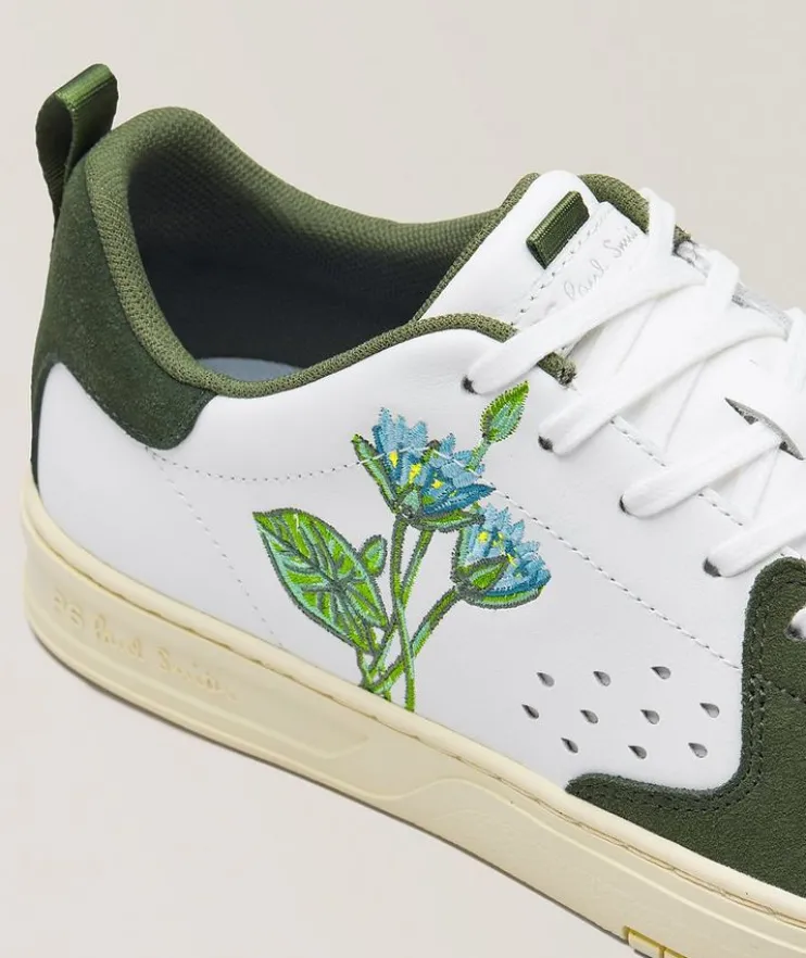 - Crafted from high-quality leather with contrast panelled detailing and an intricately embroidered floral design, these sleek sneakers make a fashion-forward statement while being practical for everyday wear.