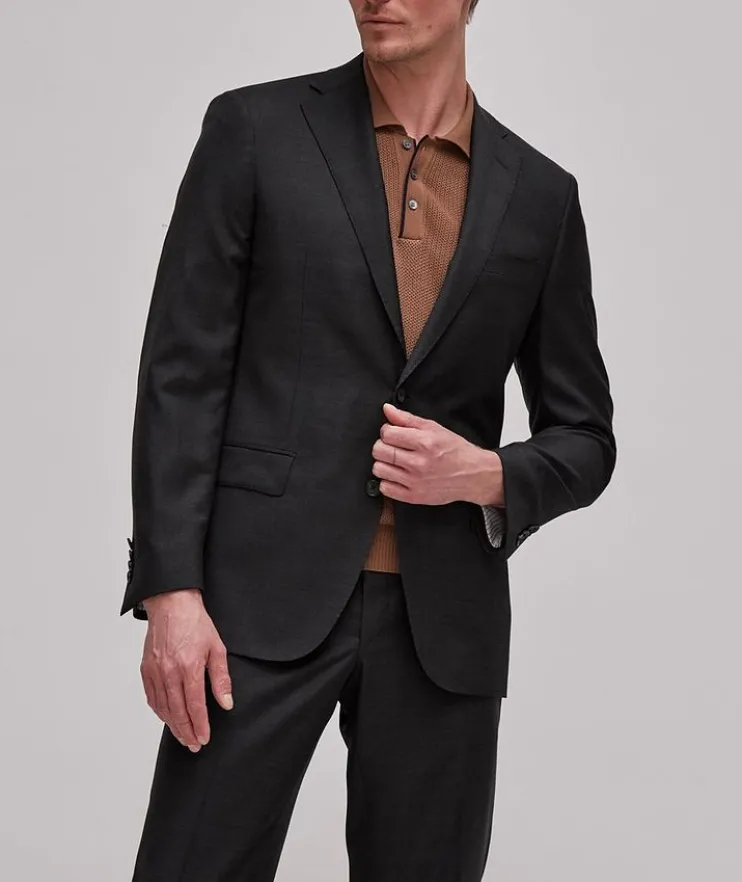 - This Samuelsohn design has been hand-tailored in Canada to the brand’s exacting standards from Super 150’s wool. Adorned in a solid charcoal finish, the fully lined Cosmo jacket is crafted with the brand’s exclusive Ice Technology, maintaining optimal body microclimate while offering water and stain resistance, wrinkle recovery, natural stretch and breathability. It’s an unerringly sophisticated option ideal for both the office and after-hours events.