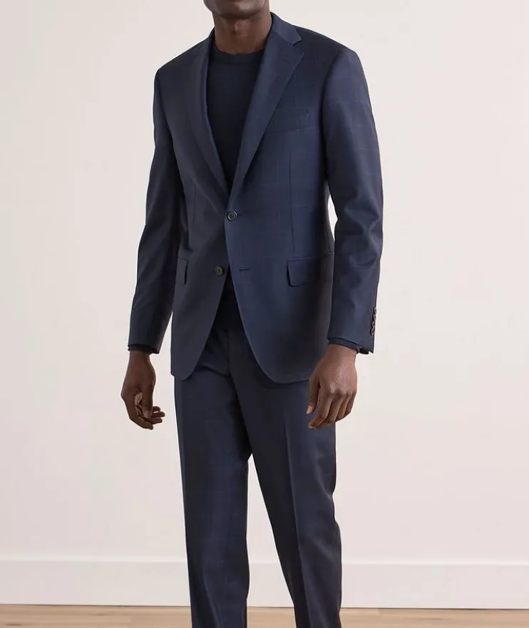 - This suit has been crafted in a regular fit, designed to sit naturally against the body.