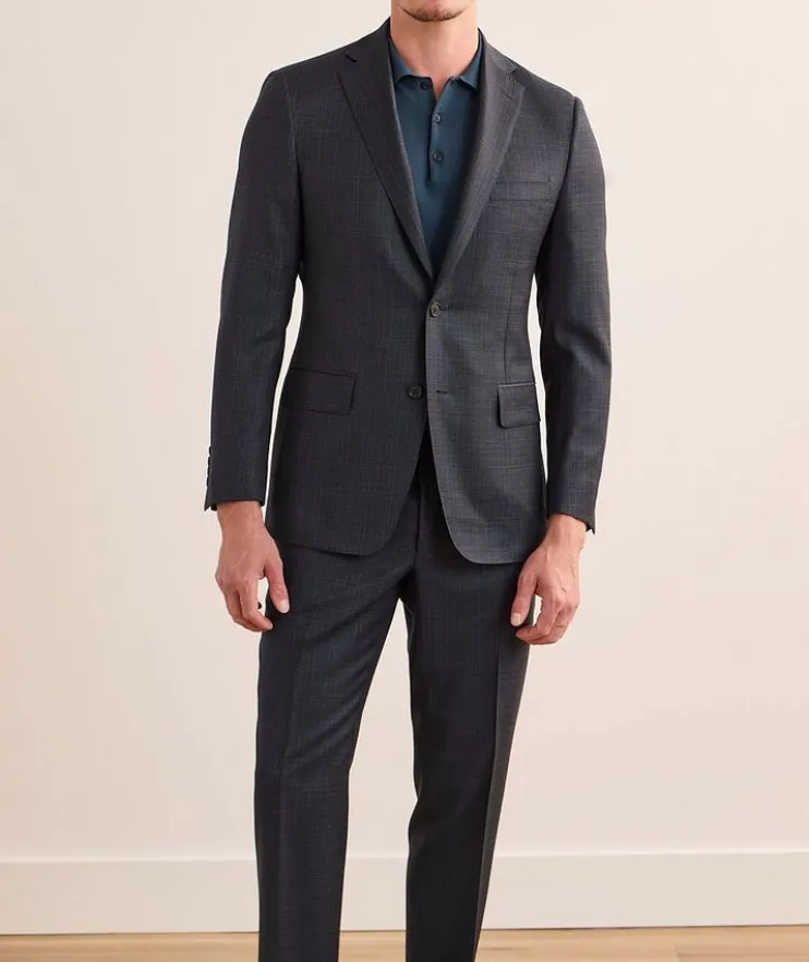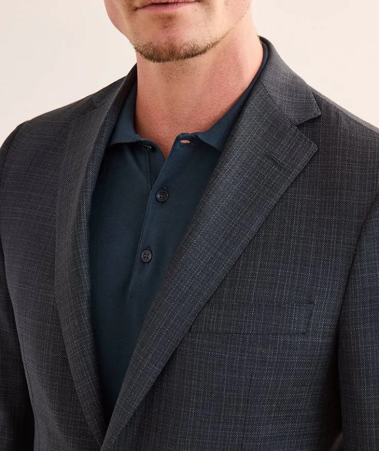 - This suit has been crafted in a slim fit, designed to sit close against the body.