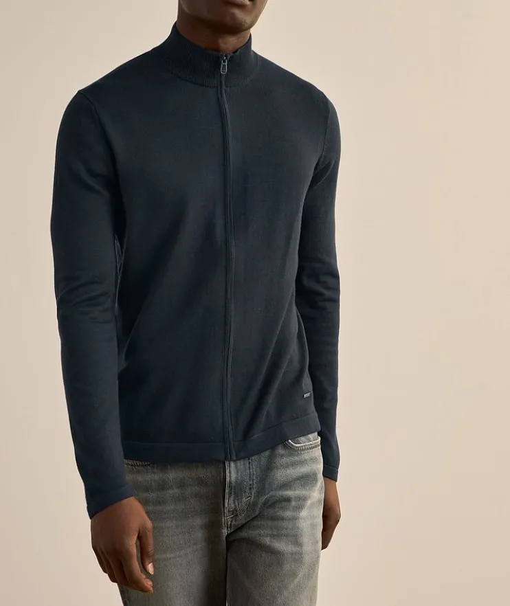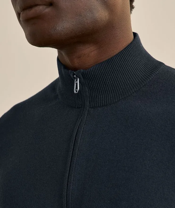 - Boasting a clean design with a hidden full zipper detail, this lightweight knit sweater makes for a stylish layering piece in urban settings.