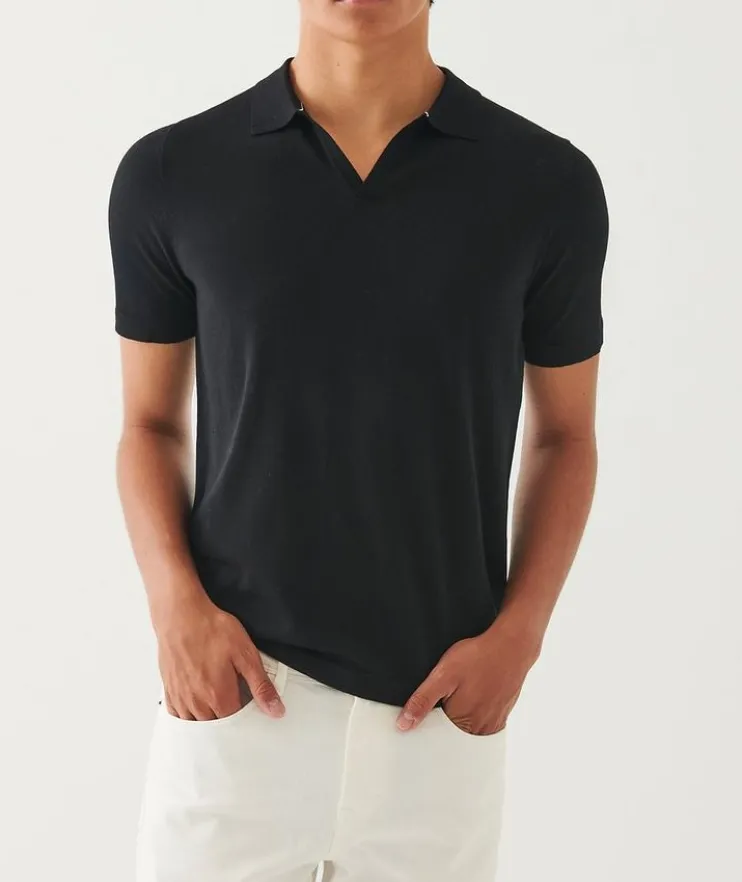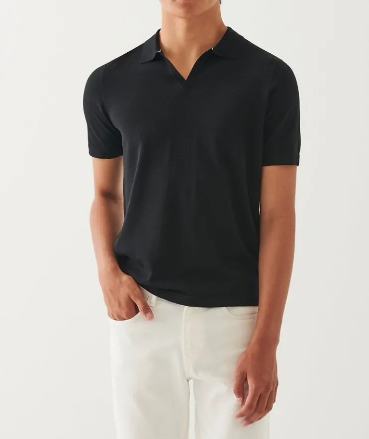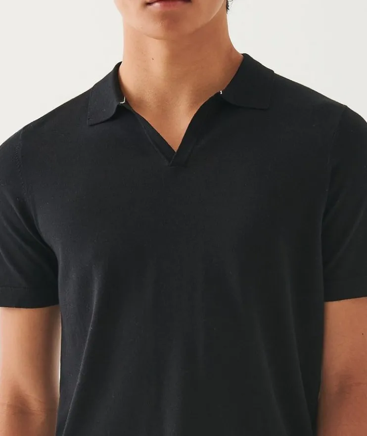 - This open collar polo is crafted in a sumptuous cotton, cupro and extrafine merino wool blend – a combination that enhances the quality of the natural fibers in the garment to offer a fresh, elegant look that is lightweight and comfortable to wear.