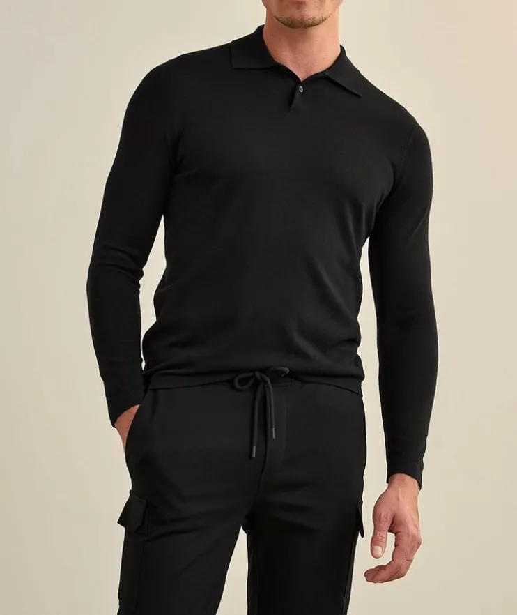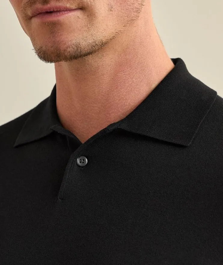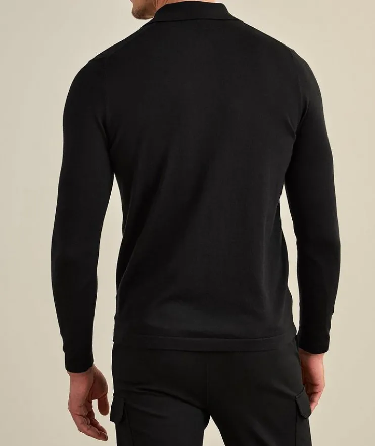 - A classic year-round wardrobe staple, this polo is characterized by the shirt-style collar, two-button placket and long sleeve silhouette. The blended cotton and extrafine merino wool fibres enrich the lightweight fabric with a soft, fluid hand.