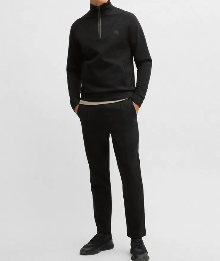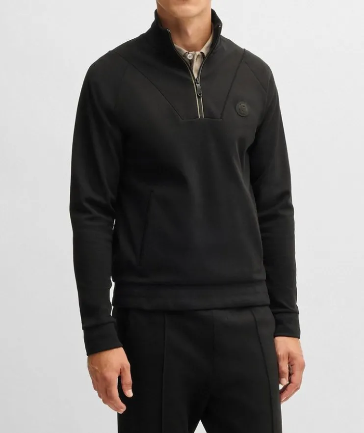 - A signature zip-neck sweatshirt by BOSS Menswear, detailed with a Double B monogram. This regular-fit design is trimmed with decorative reflective details.