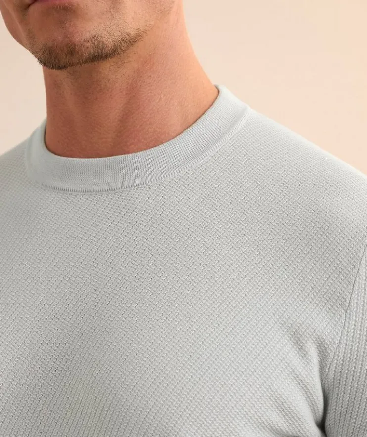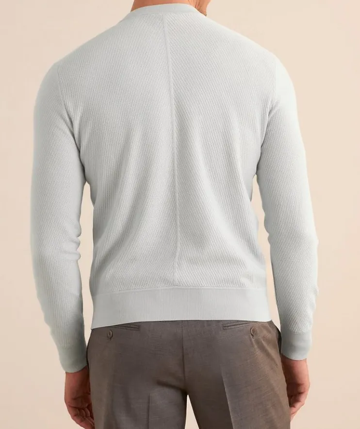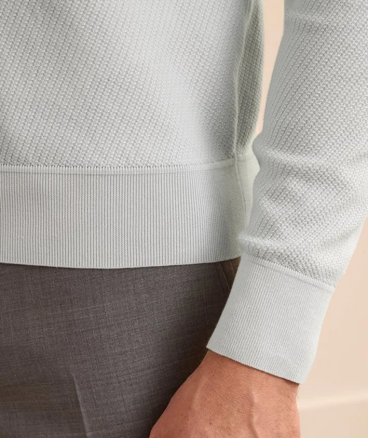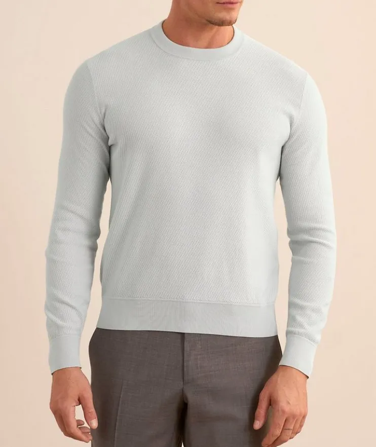 - A wardrobe essential, this crewneck sweater is constructed in a slim fit from breathable cotton with a textured knit finish.