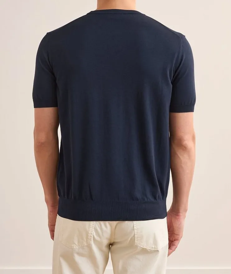 - An authentic expression of elegance to enhance the casual looks of the season, this soft knit crewneck is fashioned in premium cotton with a soft drape. A rib knit collar, cuffs and hem add traditional elements to the classic style.