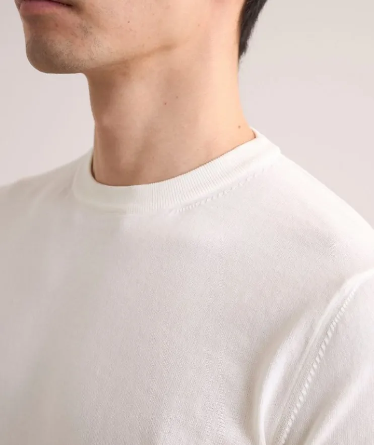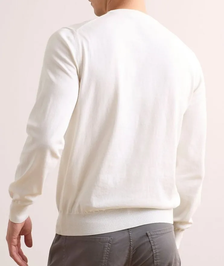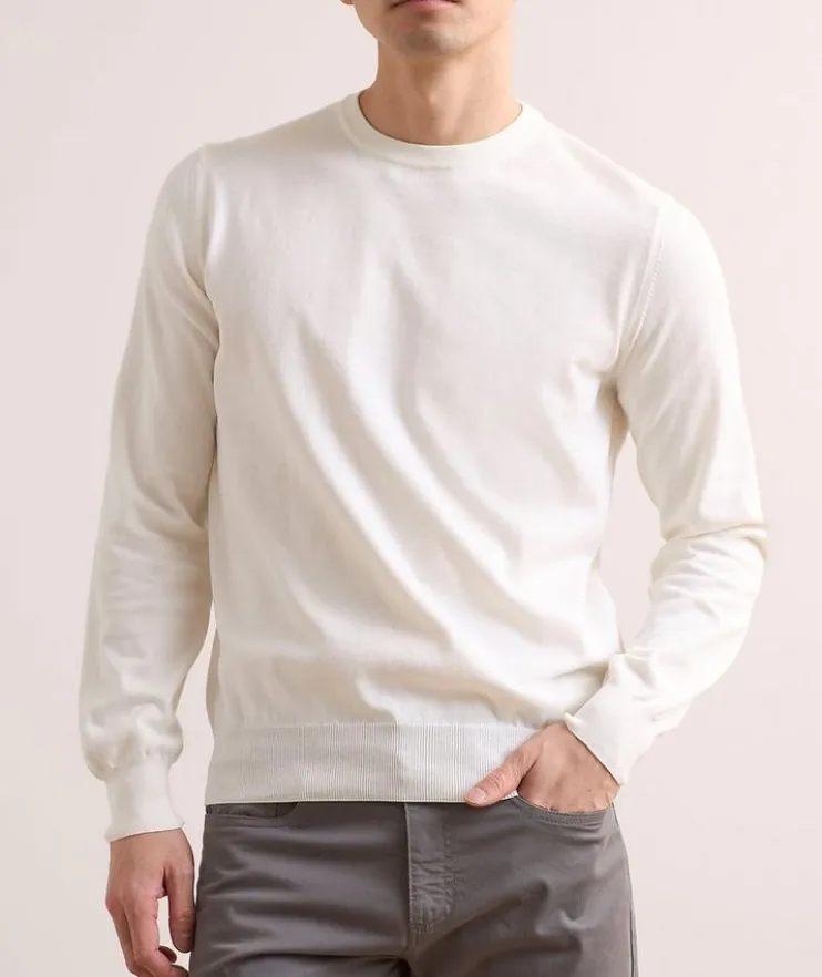 - An authentic expression of elegance to enhance the casual looks of the season, this soft touch crewneck is fashioned in ultra-lightweight cotton. A rib knit collar, cuffs and hem add traditional elements to the classic style.