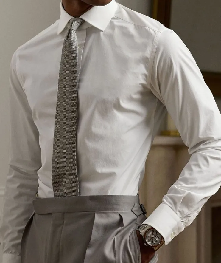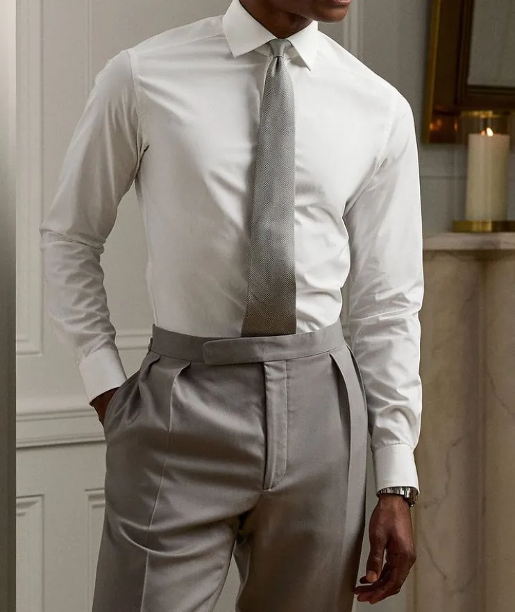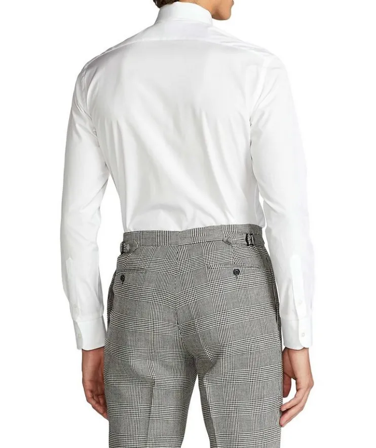 - Renowned for their commitment to style and excellence, Ralph Lauren’s Purple Label uses the best materials combined with meticulous construction to create their elevated classics. Expertly crafted in Italy, this sophisticated dress shirt is made from a fine cotton and features a spread collar, genuine mother of pearl button placket and crisp white finish completing the luxurious style.