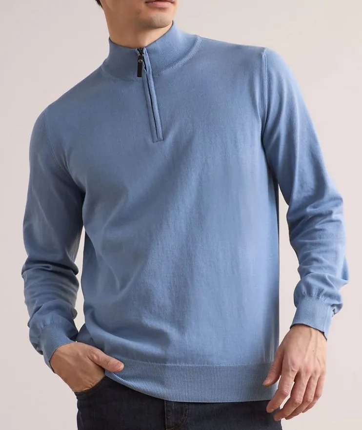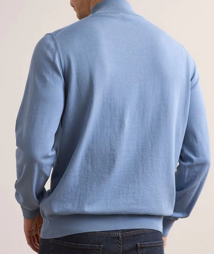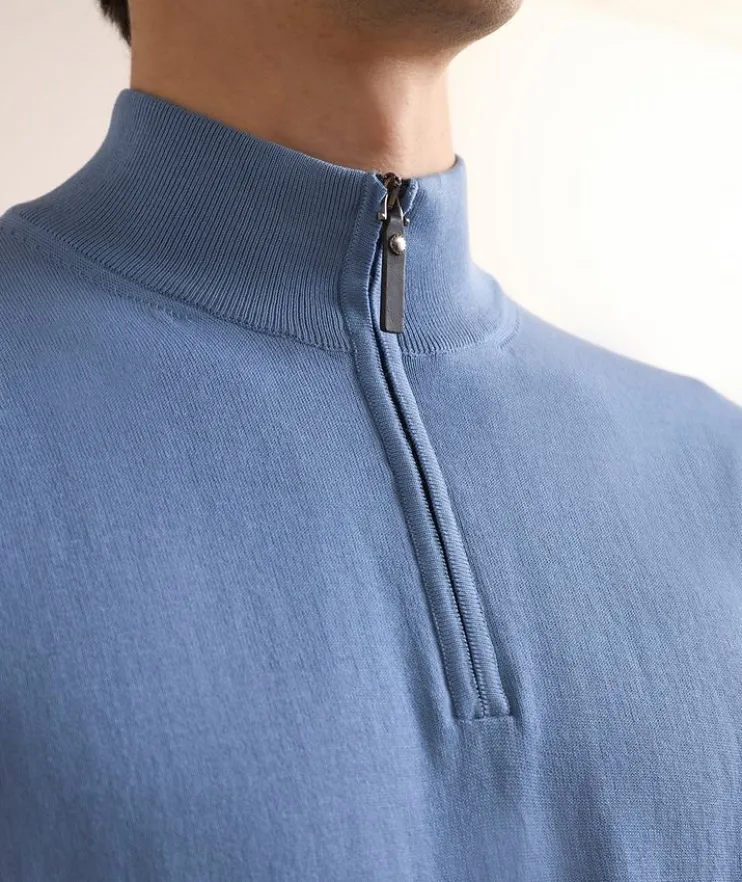 - A soft hand feel, and lightweight design characterize this rich cotton sweater. Finished with a ribbed mock neck collar, cuffs and hem, this classic half-zip is the perfect layering piece for every occasion.