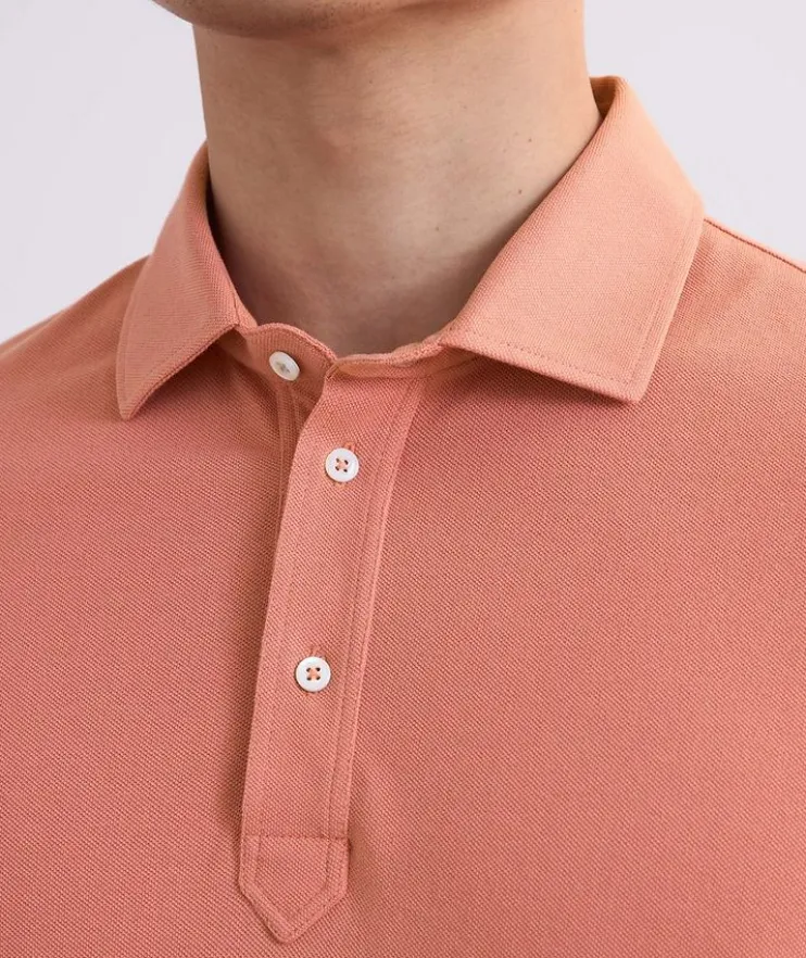 - A classic year-round wardrobe staple, this polo is characterized by the shirt-style collar, three-button placket and regular fit. The fine natural cotton fibres enrich the lightweight jersey fabric with a soft, fluid hand.