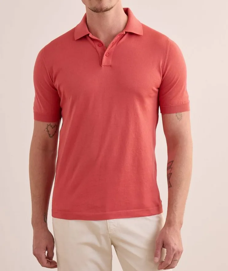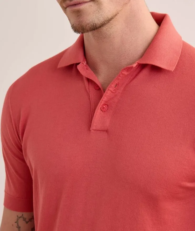 - Crafted from fine cotton, this short-sleeved knit polo shirt adds an element of understated sophistication to any casual ensemble.