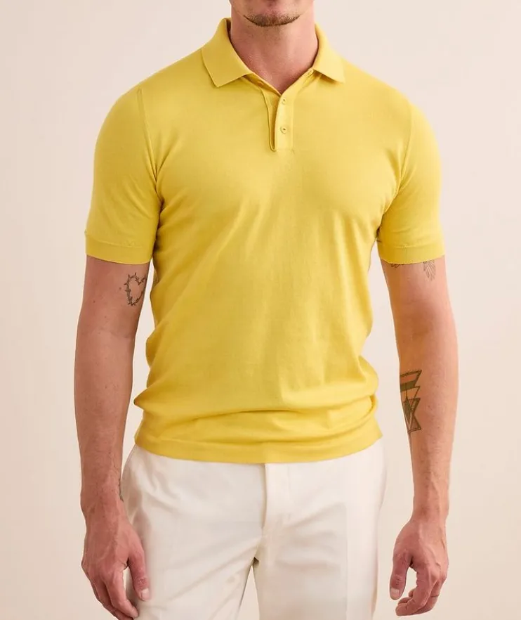 - Crafted from fine cotton, this short-sleeved knit polo shirt adds an element of understated sophistication to any casual ensemble.