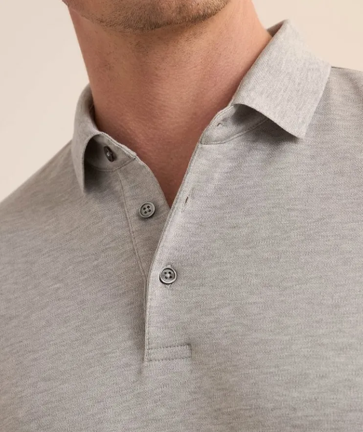 - This short-sleeved polo features a cotton knit fabrication with mother-of-pearl button details and a solid design that can easily be dressed up or down.