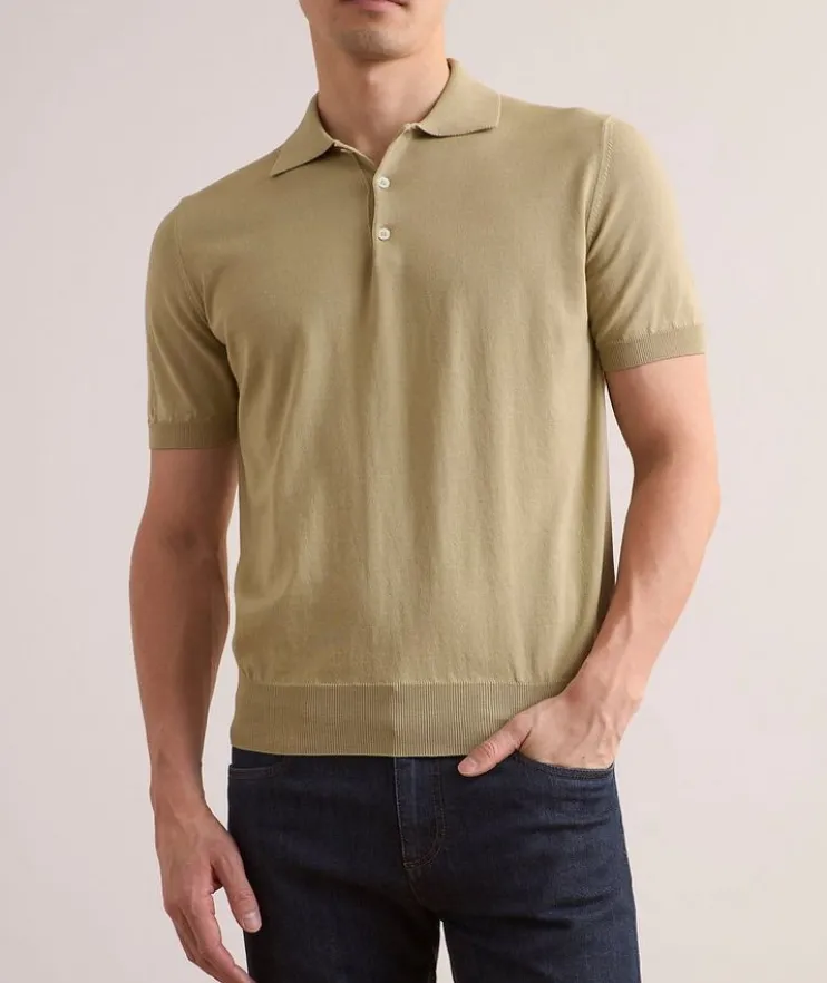 - Refined and comfortable, this versatile polo is specially treated using artisan processes for a unique garment-dyed finish. Soft ribbed trim and short sleeves lend traditional elements to the classic smart casual style.