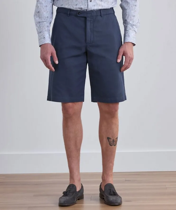 - Tailored from lightweight, breathable cotton and linen with a touch of stretch, these straight cut shorts are a warm weather staple for your casual cool wardrobe.
