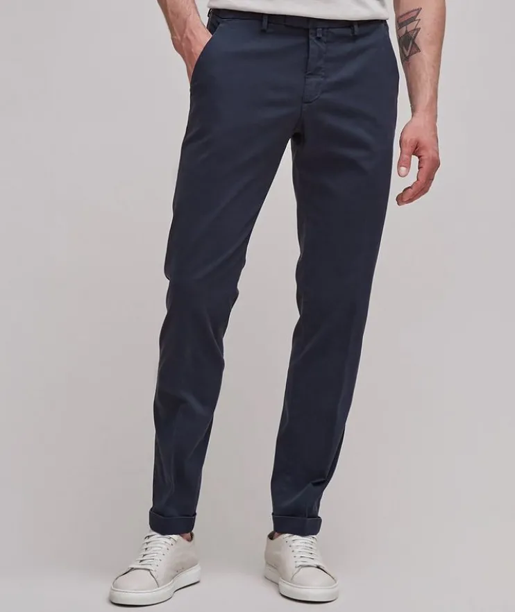 - The classic character of these stretch chino pants remains close to the body but offers slightly softer lines than the more traditional cuts. This smart casual staple is expertly tailored using superior cotton and lyocell-blend fibres for lasting wear and year-round comfort.