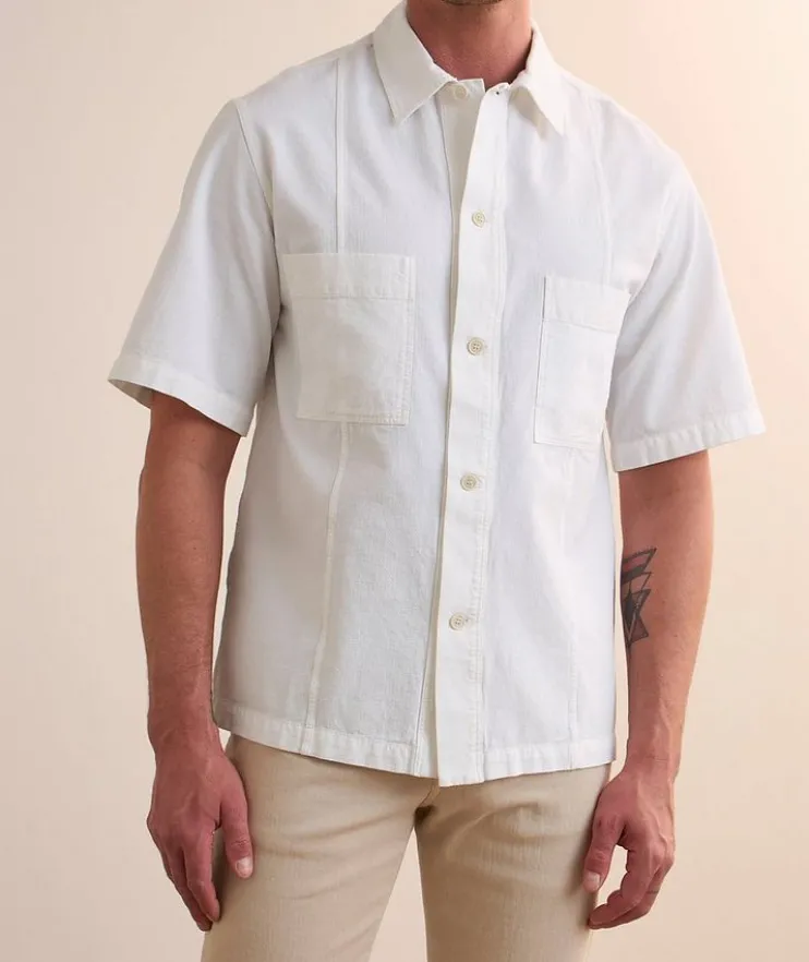 - Cut in a boxy fit with exclusive crepe whipcord cotton, this workwear-inspired overshirt lends a modern attitude and contemporary style to any occasion. Its textured, crinkled surface and diagonal waves add depth and character to the design.