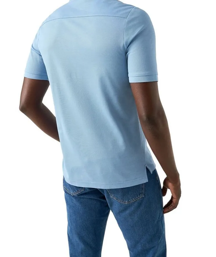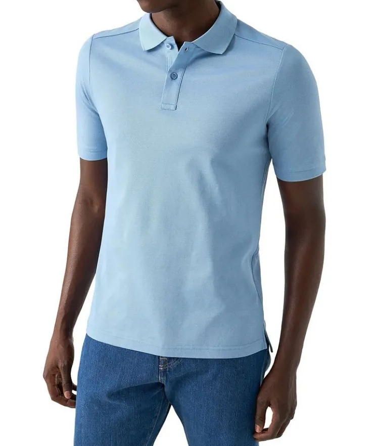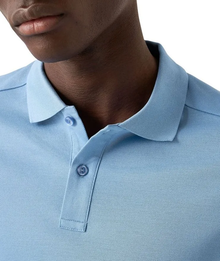 - A beautiful polo shirt cut from a solid piqué jersey fabric, knitted from Filo di Scozia yarn in Lombardy, Italy. Designed to offer you extra softness and flexibility, this polo shirt features a knitted collar and cuff, combined with a classic button fastening to create an effortlessly stylish look.