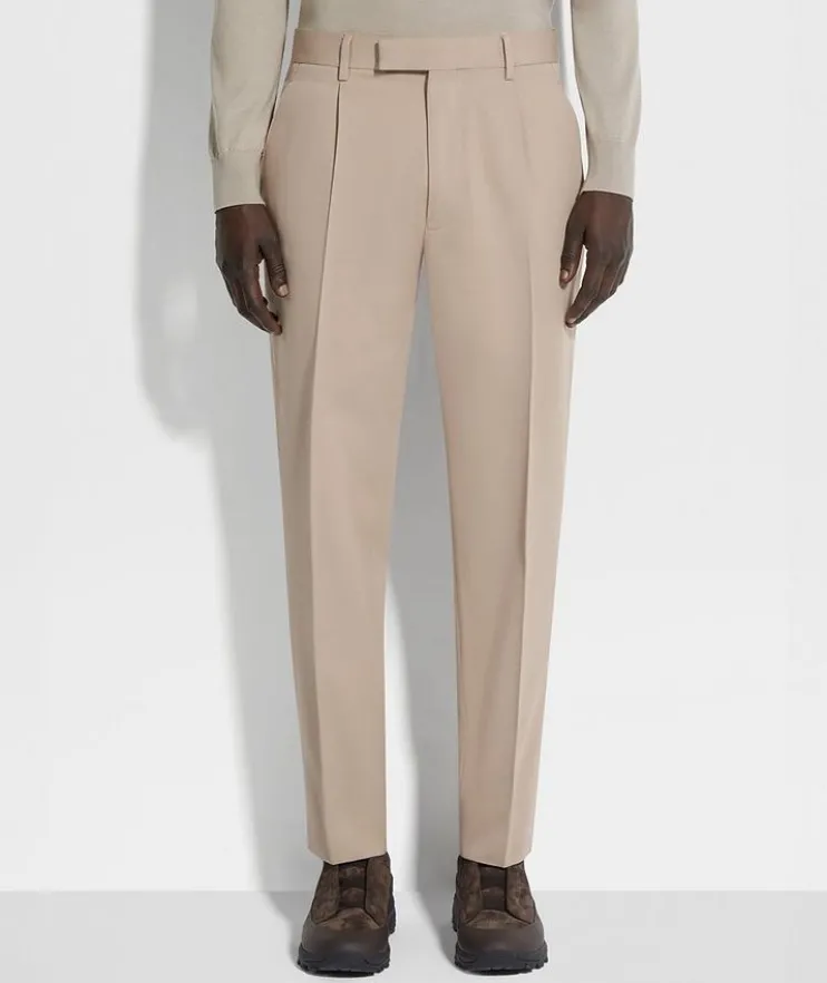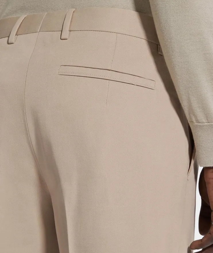 - Easy to dress up or down, these cotton-wool pants pair lightweight fabric with a classic, pleated fit. They are styled with slanted pockets in the front and welt pockets on the back.