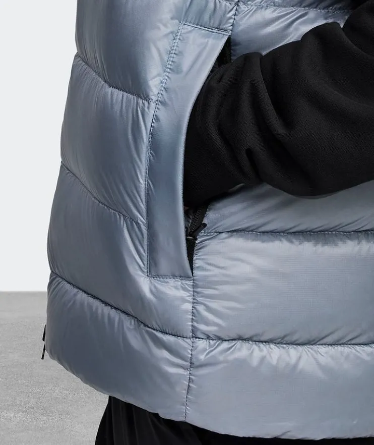 - An easy and versatile layering piece, this lightweight down vest packs into itself for easy portability.