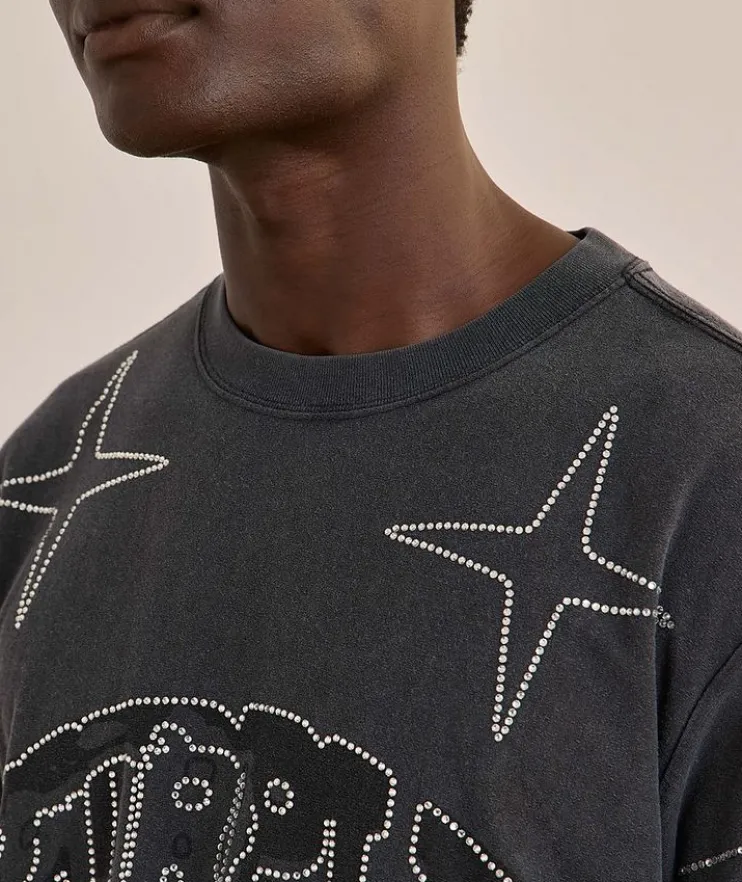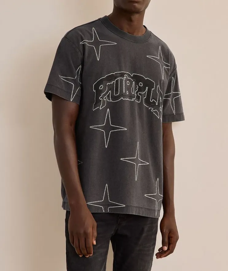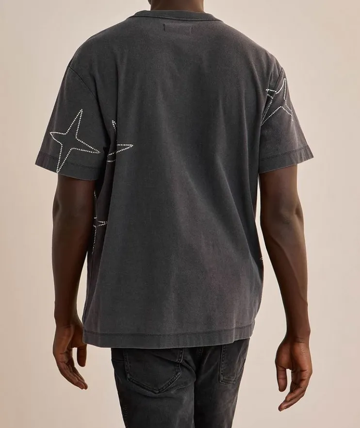- This standout t-shirt comes in a stone-washed textured jersey knit. It’s cut for a relaxed fit from 100% cotton with a high-gloss screen print and Purple brand lettering, studded with hotfix crystals.