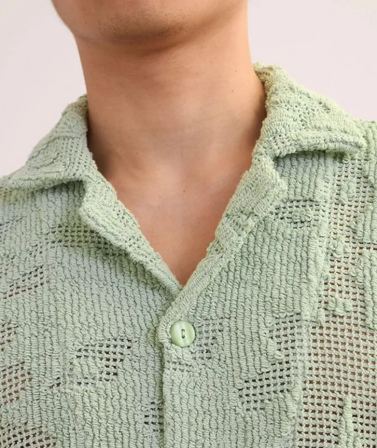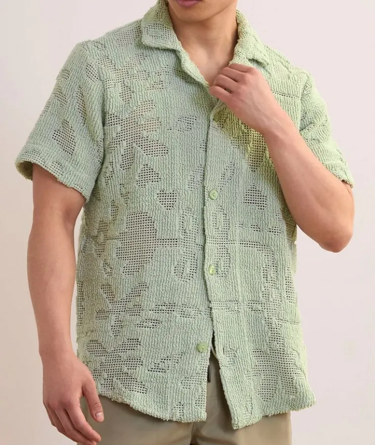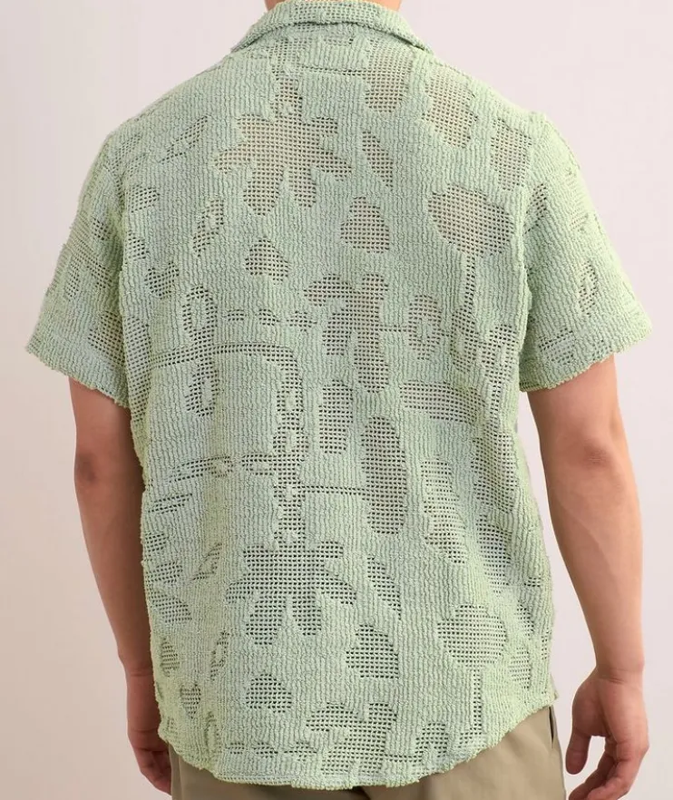 - This statement artisanal shirt presents an abstract take on botanical motifs, brought to life in a heavyweight woven cotton crochet fabric.