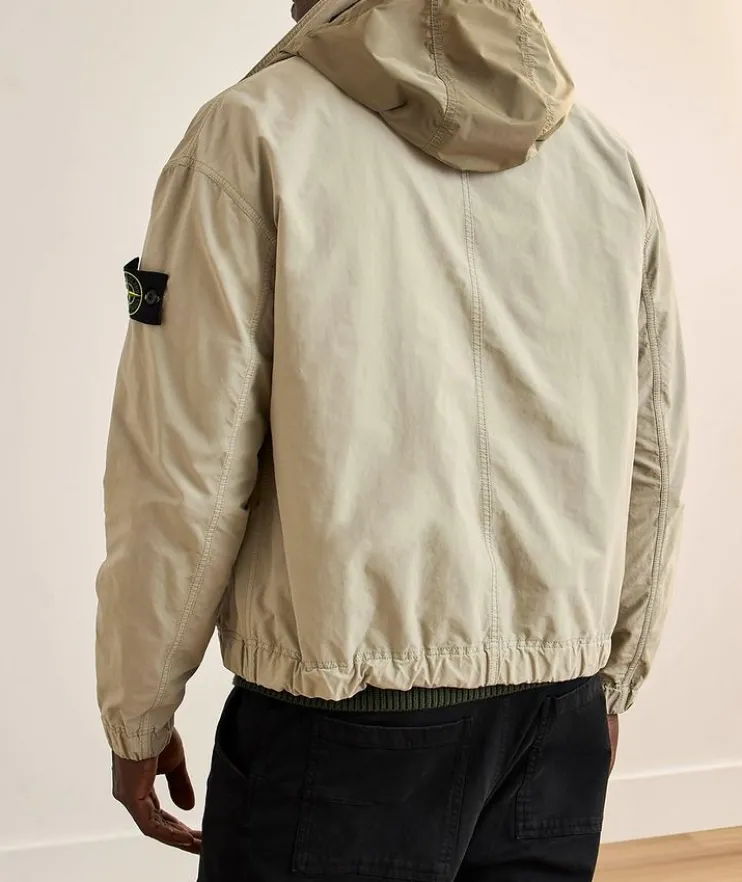- This contemporary jacket is crafted in a lightweight tela made with Japanese star-shaped cross-section technical yarns. Finished with a concealed hood, multiple pockets and a two-way zipper for an industrial look and feel.