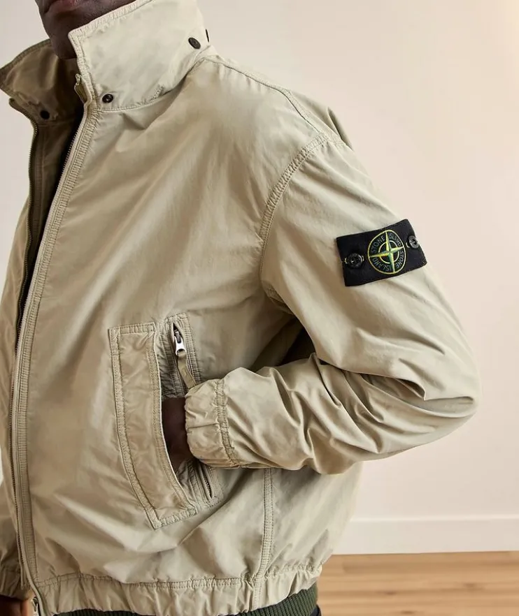 - As functional as it is stylish, this shirt jacket by Stone Island is an essential in transitional weather. Layer over a crewneck sweater and streamlined jeans for classic mid-season look. Pair with a branded sweatshirt andjogger set to exude a laidback street-chic aesthetic.