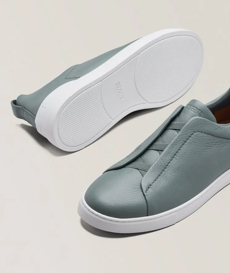 A contemporary style for every day, this slip-on sneaker is hallmarked with a trio of crisscross laces inspired by the handmade stitches found on the brand’s signature tailoring. Triple Stitch sneakers fit slightly wide, we recommend selecting a half-size down from your typical sneaker size.