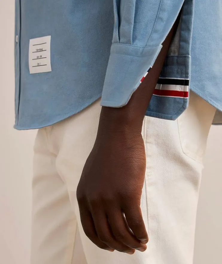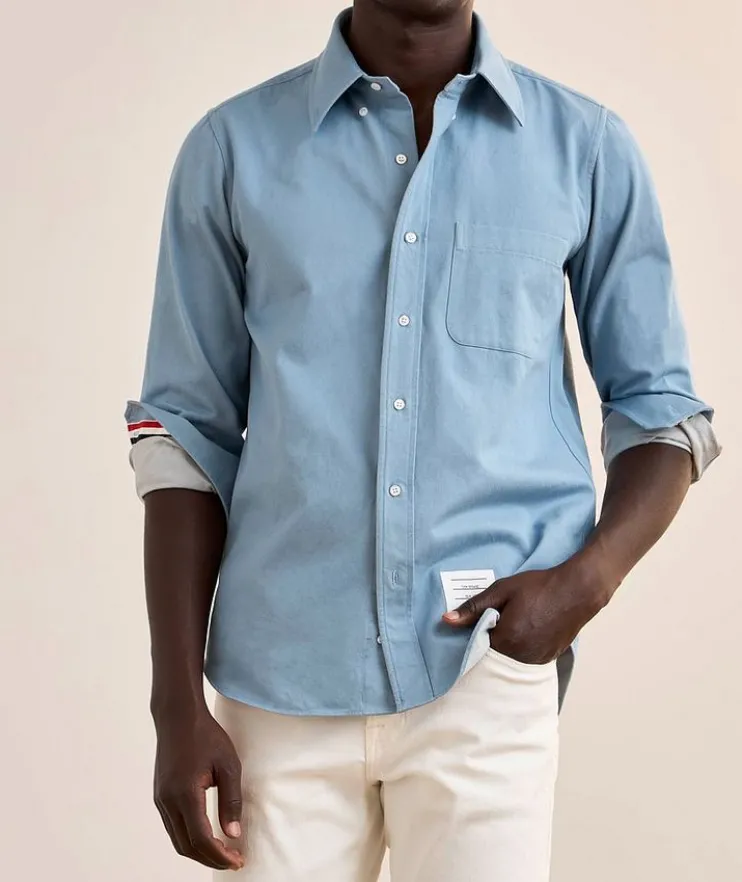 - A timeless piece that can be dressed up or down, this button-down shirt is crafted from lightweight denim with Mother-of-pearl buttons for an element of understated luxury. Finished with the brand’s name tag logo patch and a pocket detail for a contemporary appeal.
