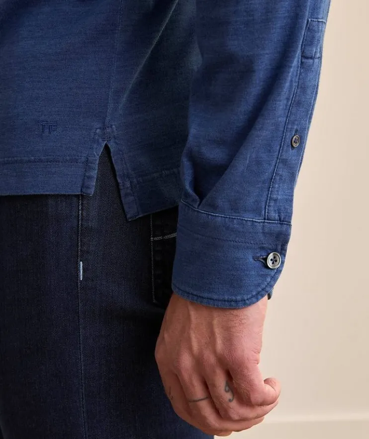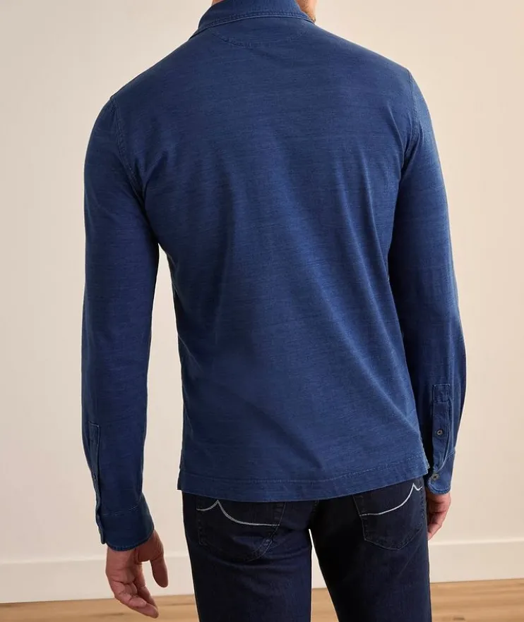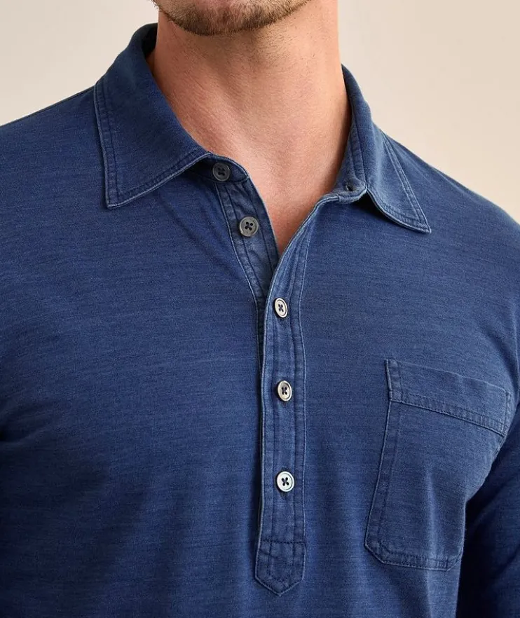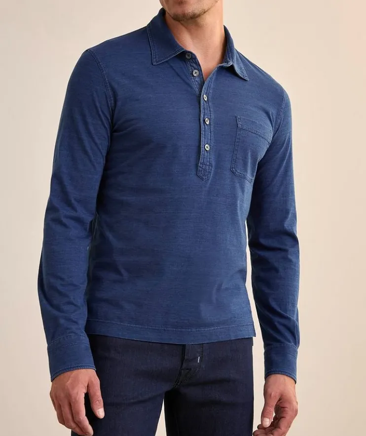 - This long-sleeved polo is crafted from ultra-soft cotton with a denim-wash effect for an effortless and laidback appeal. Finished with mother-of-pearl buttons and a patch pocket at the chest.
