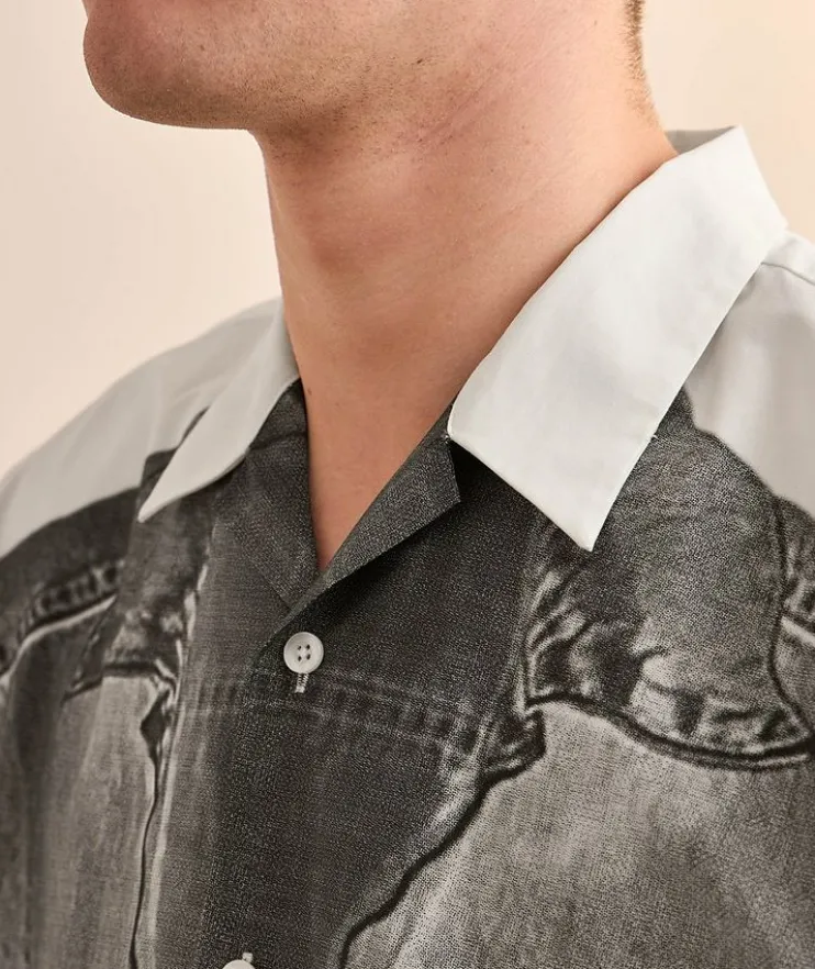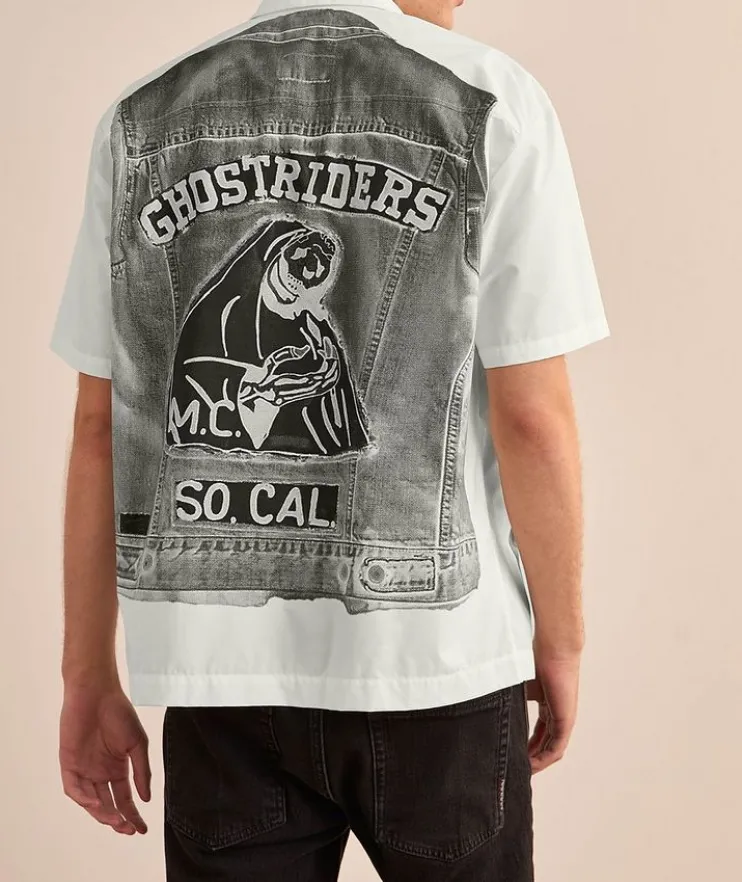 - Cut in a relaxed fit, this lightweight and breathable cotton shirt features a digital biker vest print on the front and back for a statement look.