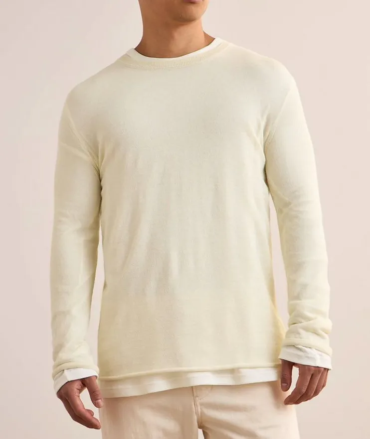 - This lightweight sweater features and ultra-lightweight knit, resulting in a see-through design over a soft cotton inner layer. A classic style that can be dressed up or down for a variety of occasions.