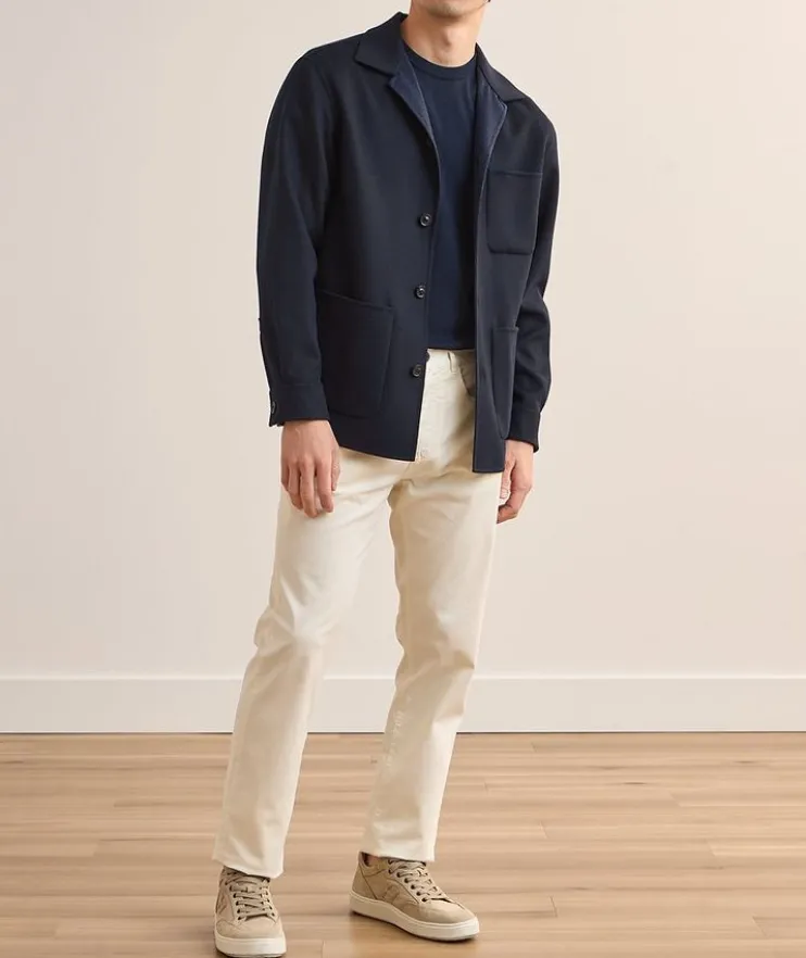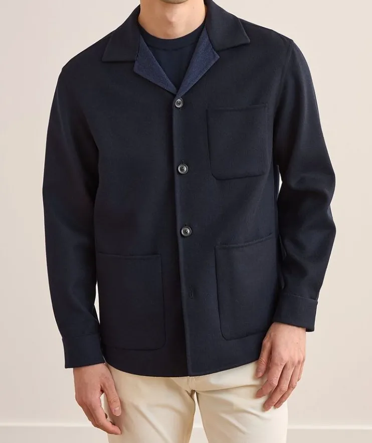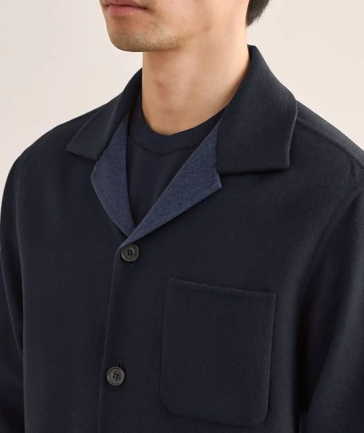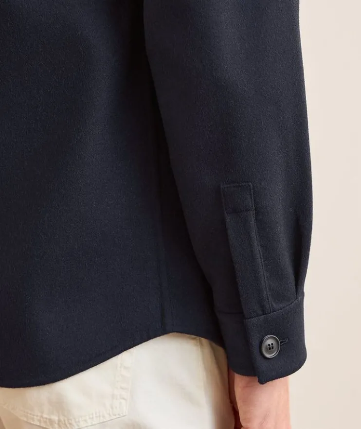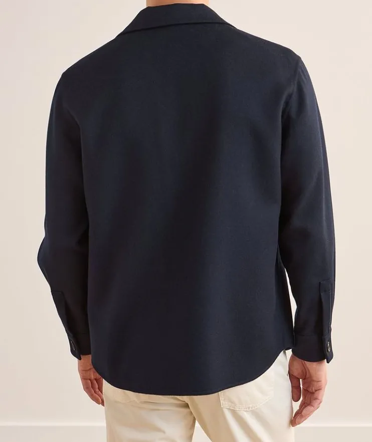 - Expertly crafted in rich wool with a touch of stretch, this double monochrome overshirt blends the season’s soft tailoring trend with a sophisticated outerwear look.