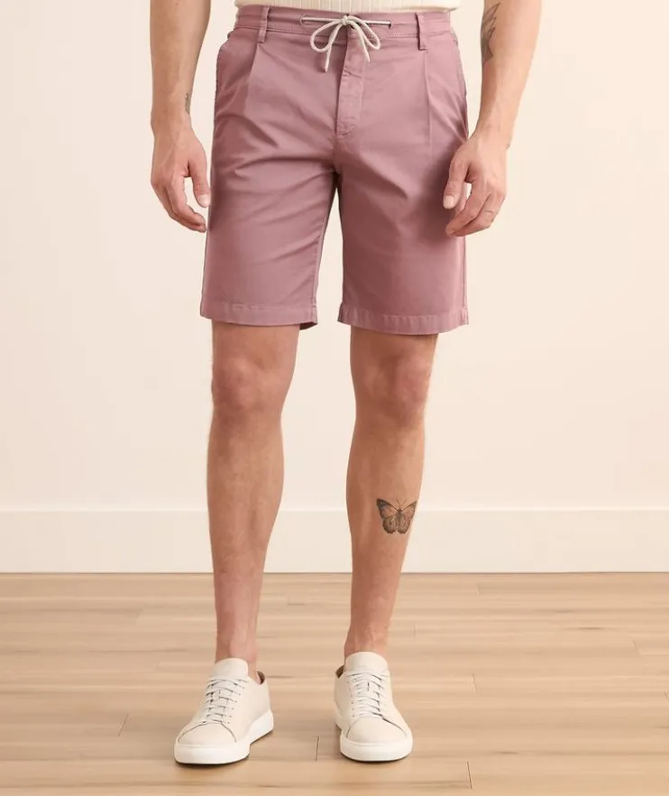 - A warm-weather essential, these chino-style shorts are crafted from a stretchy cotton blend and are updated with elasticized side panels and a drawstring detail for a casual appeal.