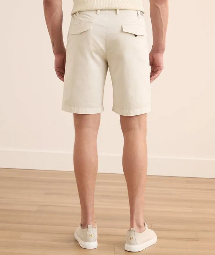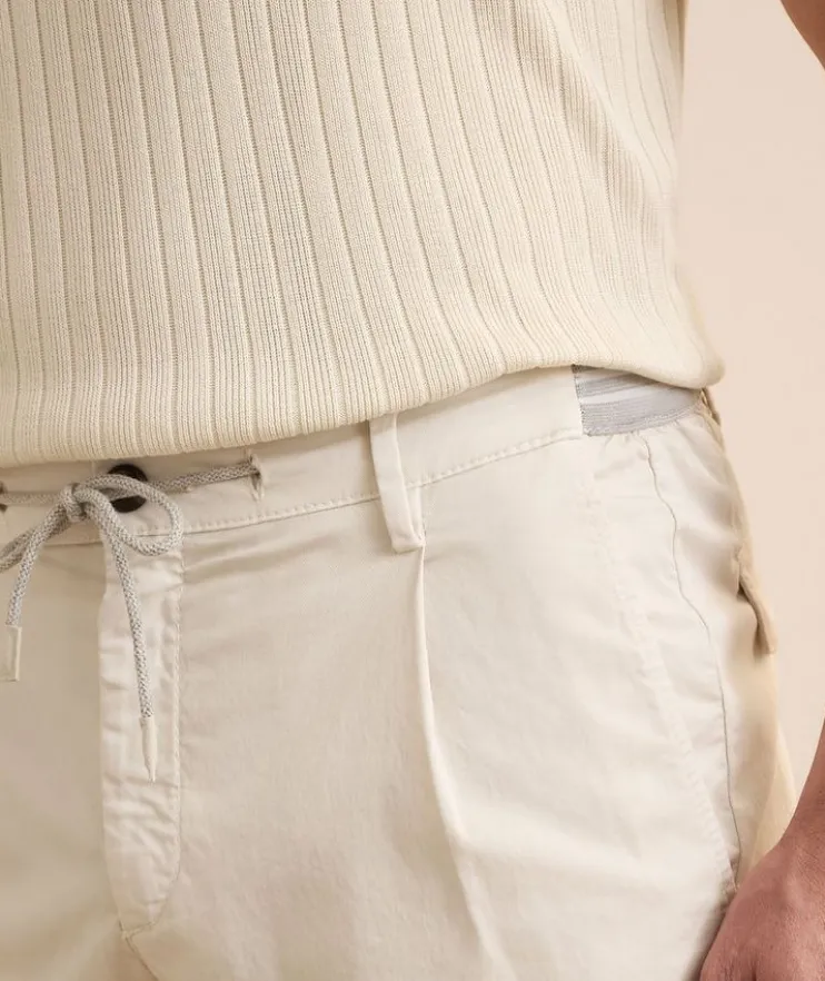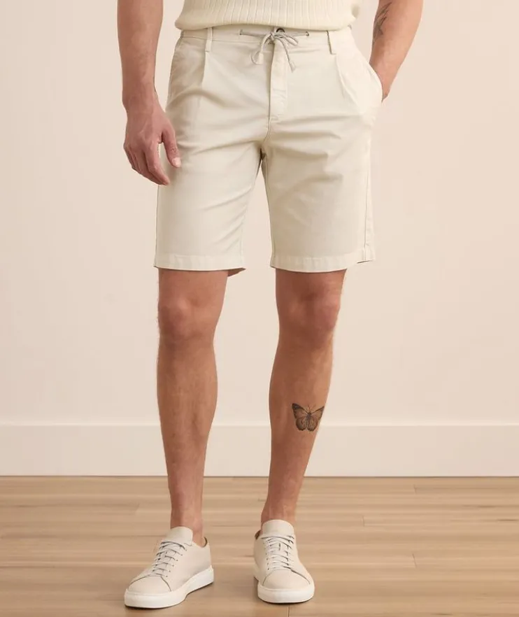 - A warm-weather essential, these chino-style shorts are crafted from a stretchy cotton blend and are updated with elasticized side panels and a drawstring detail for a casual appeal.
