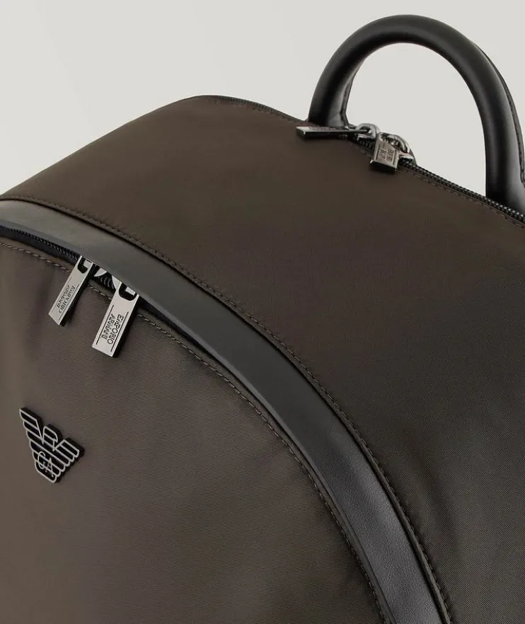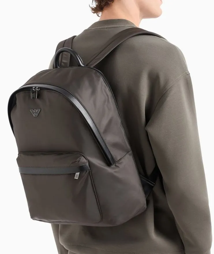 - Defined by a modern, linear design and urban allure, this line features nylon items made from certified recycled material, with details in regenerated leather and shaped metal eagle logos. A family of accessories showcasing the brand’s eco-sustainable and environmentally friendly journey over the past several seasons.
