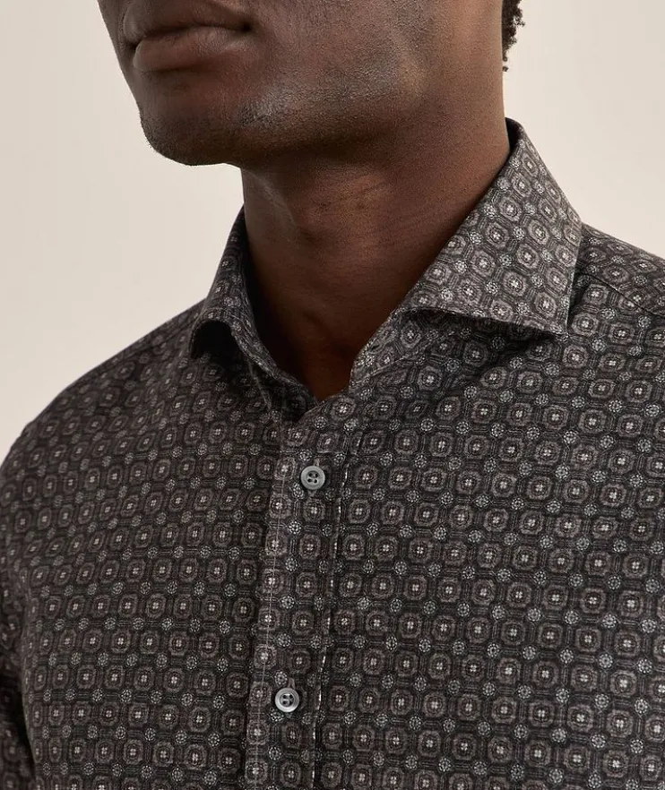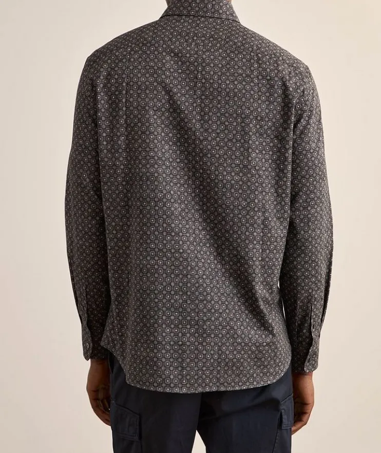 - A refined geometric pattern delivered in pure cotton fabric, this lightweight and breathable shirt guarantees ease and versatility with its comfortable straight lines and easy fit.