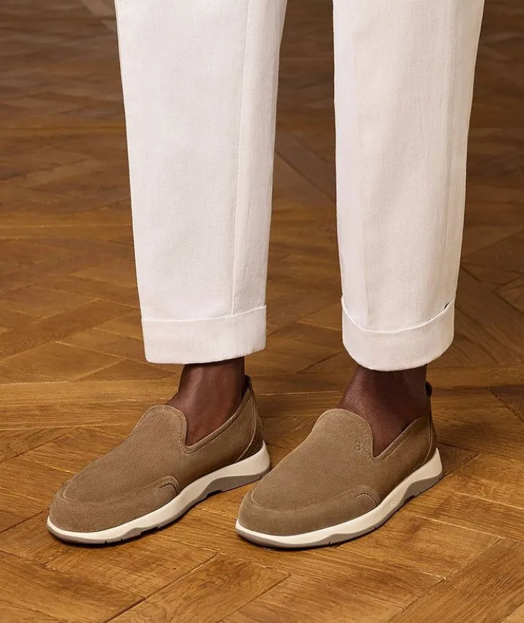 - This smart-casual design is expertly constructed with suede calf leather and features a padded insole and a signature ‘B’ hot stamped on the vamp. To care for suede, use a soft brush, to remove any dirt.