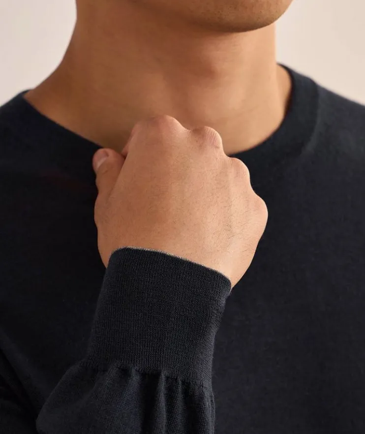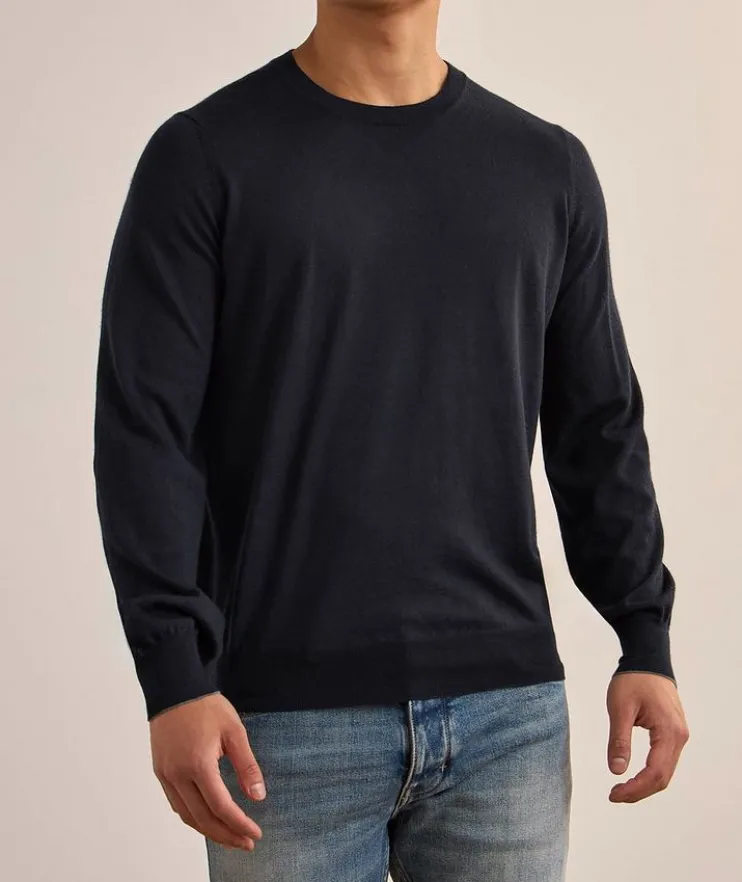 - Fashioned in luxuriously soft virgin wool and cashmere blend, this classic crewneck evokes timeless appeal and sophisticated branding with its lightweight texture, suede elbow patches and tipping at the cuffs.